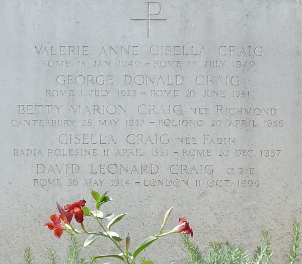 David Leonard Craig (30 May 1914, Rome – 11 Oct 1995, London) George Donald Craig (1 Jul 1923 – 20 Jun 1951) |