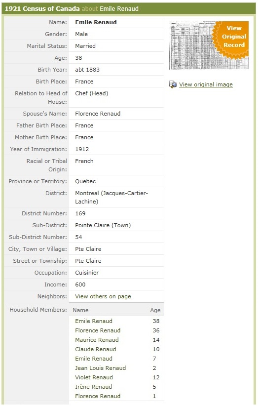 The Passenger List (in which he is revealed as one of the ship's cooks) also tells us that he still lived at the city (as of 2006) of Pointe Claire in Quebec, just as he had in 1921. Perhaps he had reached that saddle-point in life at which by paddling reasonably hard you stay clear of the downstream Niagara but you're never going to make it to the upstream Shangri-La.