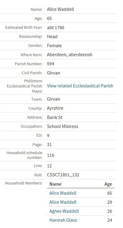 I can find virtually nothing via the internet about the remaining 32 years of his life, though I think he first moved to Glasgow. He died in Girvan, however, the Ayrshire coastal town where his son Peter Hately Waddell had founded the 'Church of the Future' in 1843, so perhaps he and his second wife Alice (née Hately) had removed there too.
