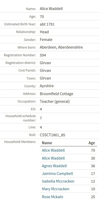 (perhaps Jemima and the young McCracken sisters were resident pupils, though of course Rose was almost certainly a domestic servant)
