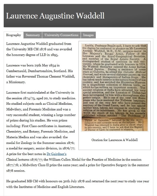 Laurence Austine Waddell bequeathed his huge collection of books, letters and documents to his alma mater, the University of Glasgow: