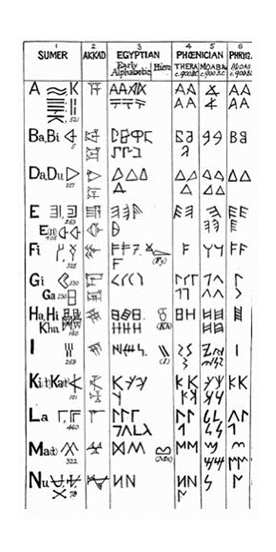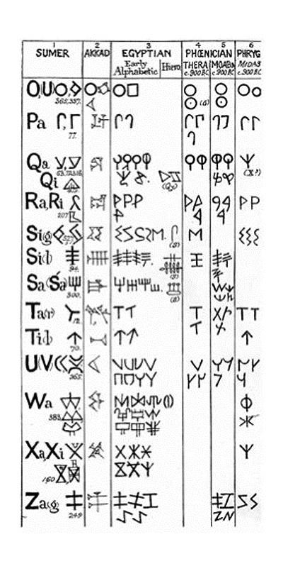 Example of Sumerian pictograms and Phoenicia Cadmean letters.