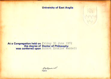 University of Bristol, Department of Theoretical Chemistry, unpaid research assistant, 1972 - 1973, supervised by Dr J Gerratt