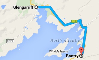 The name Garinish means 'near island' in Irish (gar = near, inis = island), and indeed it is located just offshore of the village of Glengarriff. The village itself is some 12 miles from Bantry, round the end of Bantry Bay, at the top of the Beara peninsula. There is also a much smaller island of Garinish West a few miles further down the coast, within a stone's throw of Zetland jetty.