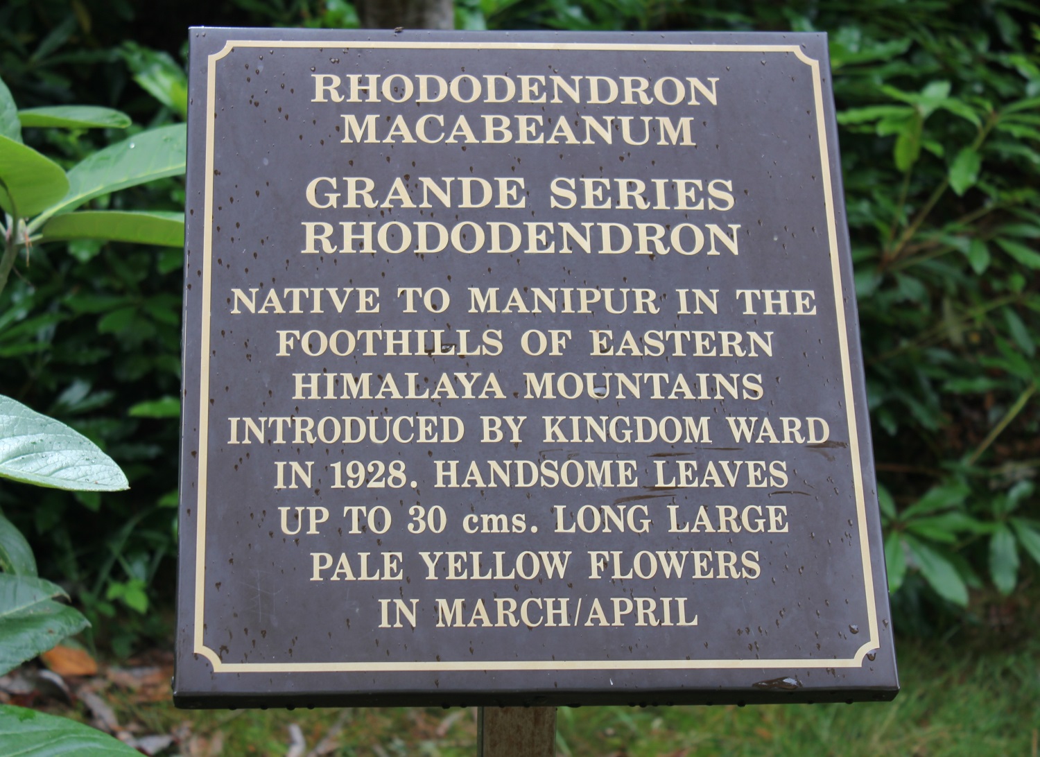 This fine specimen is one of Ilnacullin's particular showpieces in late spring, and its origins as explained on the adjacent information board, depicted below, provide an unexpected historical link between Mackenzie and Ron Kaulback.