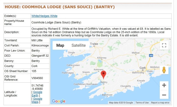 Originally known as Sans Souci (Without Cares, as per Frederick the Great's summer palace), it had been built by the White family as a hunting lodge, with a focus on fishing perhaps, as it's close to the Coomhola river (and tributary Borlin), with excellent fishing for salmon and sea trout. And it was there that Salvin Bowlby taught Audrey Kaulback the arts of fly-fishing, at which she became very proficient.