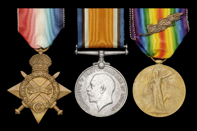 1914-15 STAR (Capt., Ceylon Plr. R.C.); BRITISH WAR AND VICTORY MEDALS, M.I.D. oakleaf (Major) very fine (3)