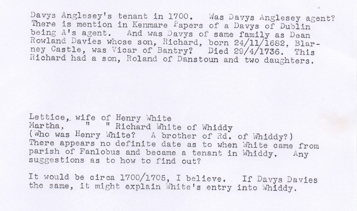 | Capt Richard White (d 1730/31) moved from Limerick to Whiddy Island in 1690 |