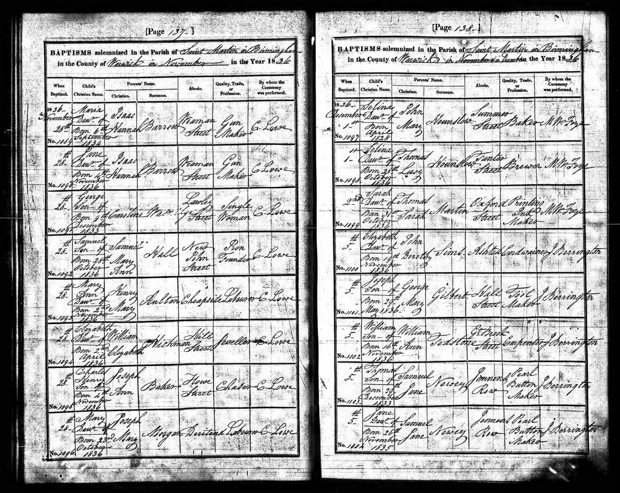 The Register of Baptisms for the parish of St Martin, Birmingham, for 1 Dec 1836 reveals a rather startling coincidence: