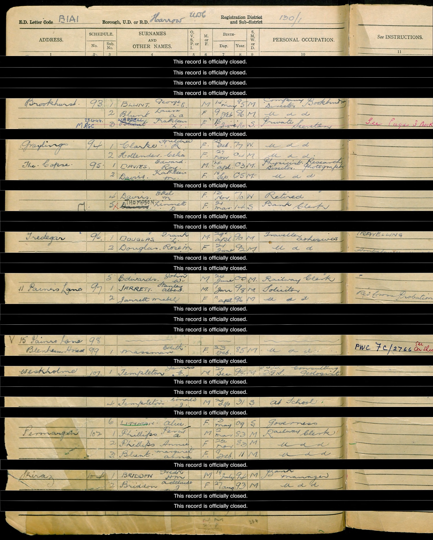 - Either way, it does become clear that (though undated) it was compiled during WW2, prior to my mother's marriage, and as it only includes adults was actually not a Census form.