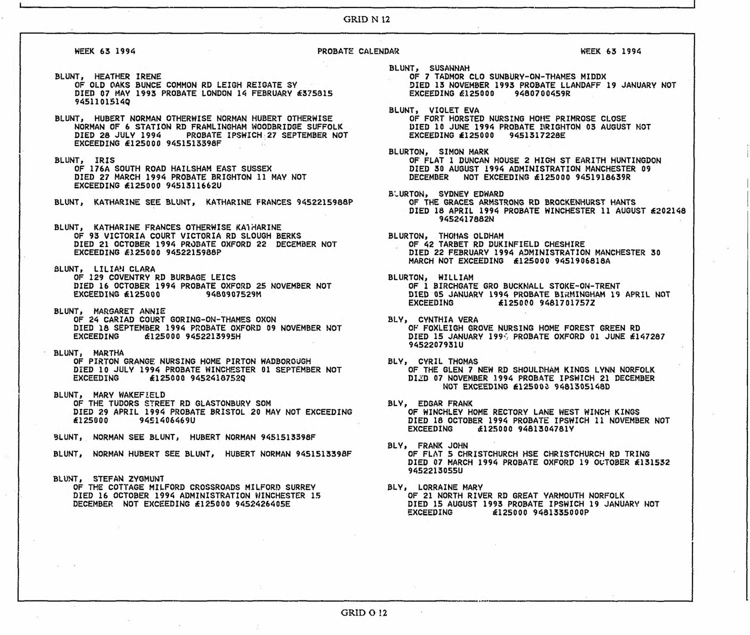 Margaret Annie (or Anna) Phillips (9 Feb 1911 – 18 Sep 1994) (m 9 Jul 1938) = George Francis Hounslow Blunt Probate |