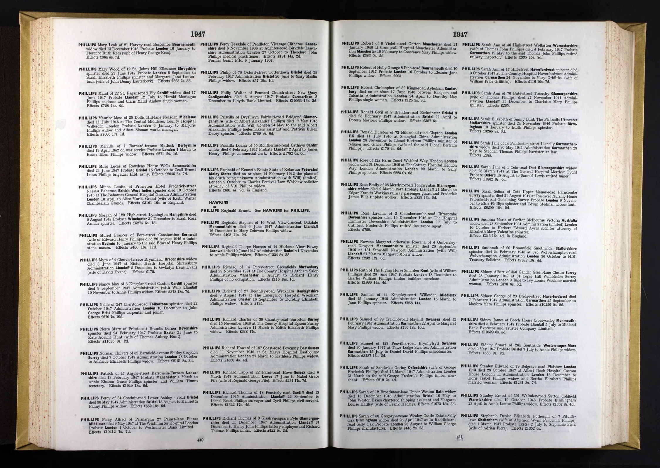 | ‑2 | Percy Alfred Phillips (2 Mar 1883 – 9 May 1947) railway clerk Probate |