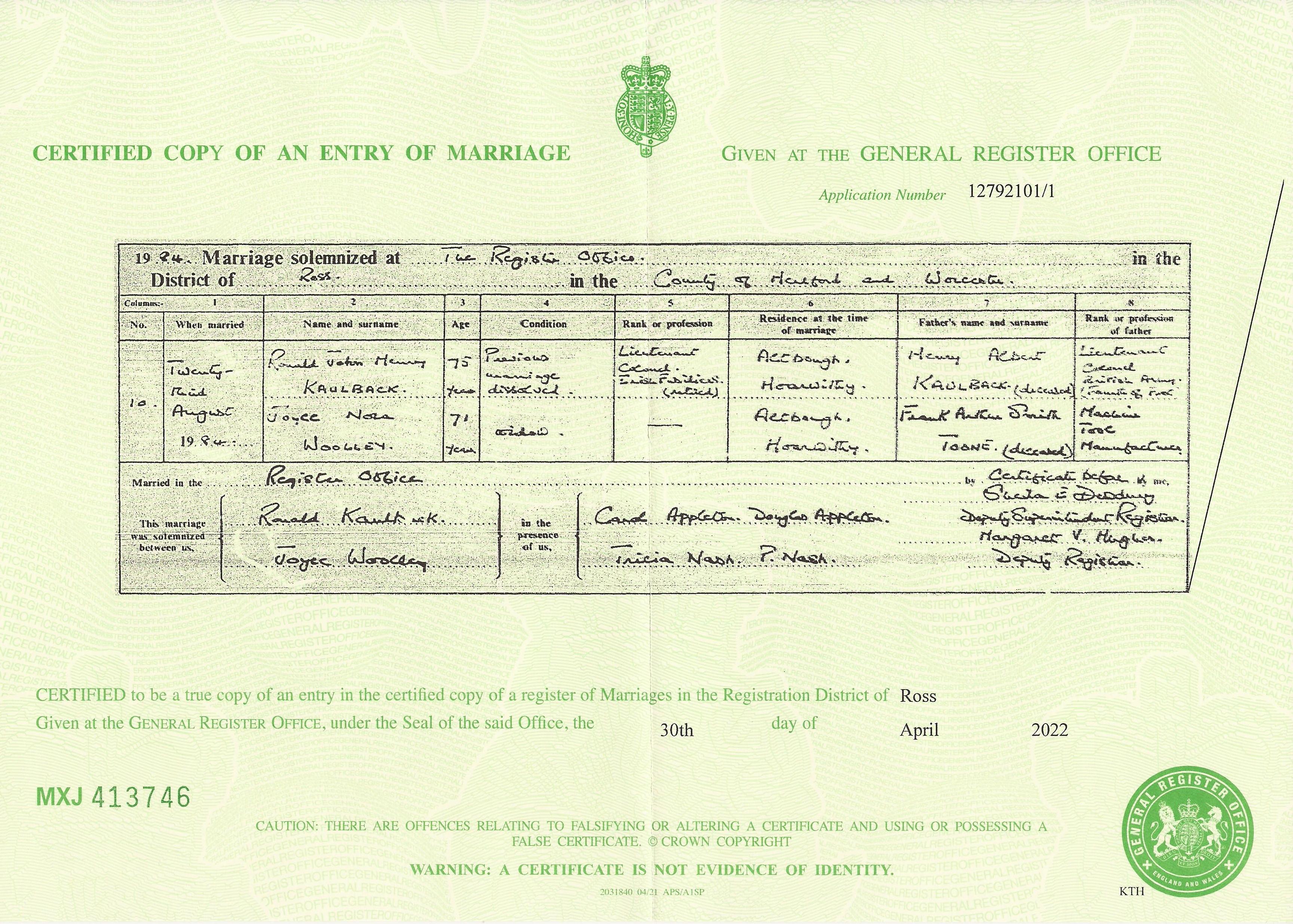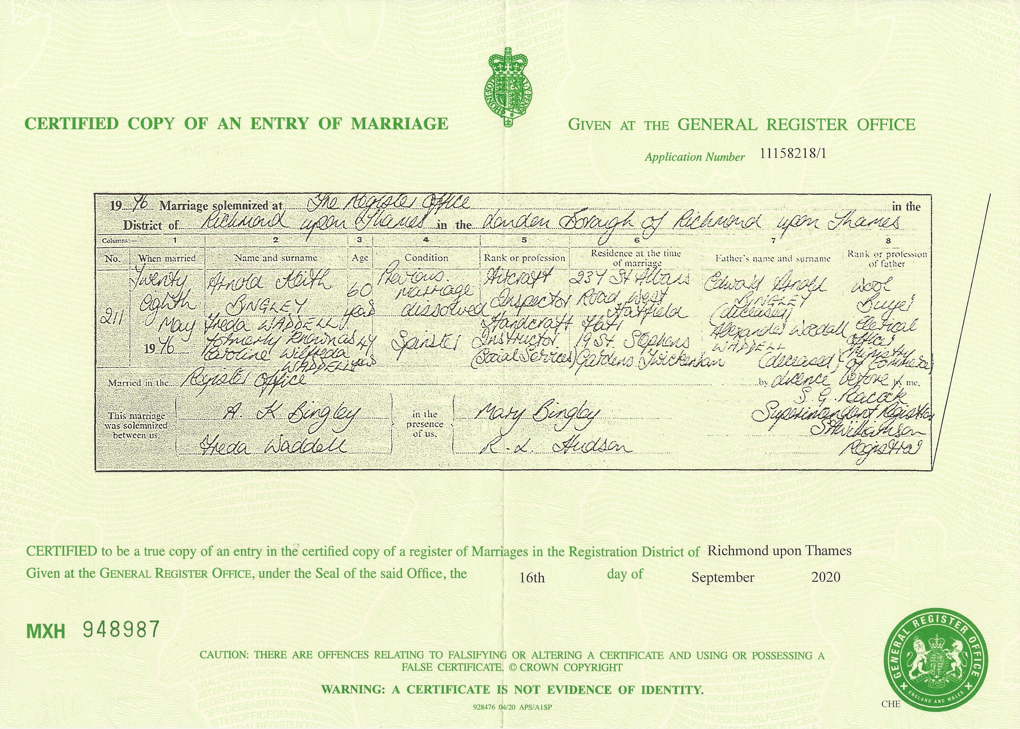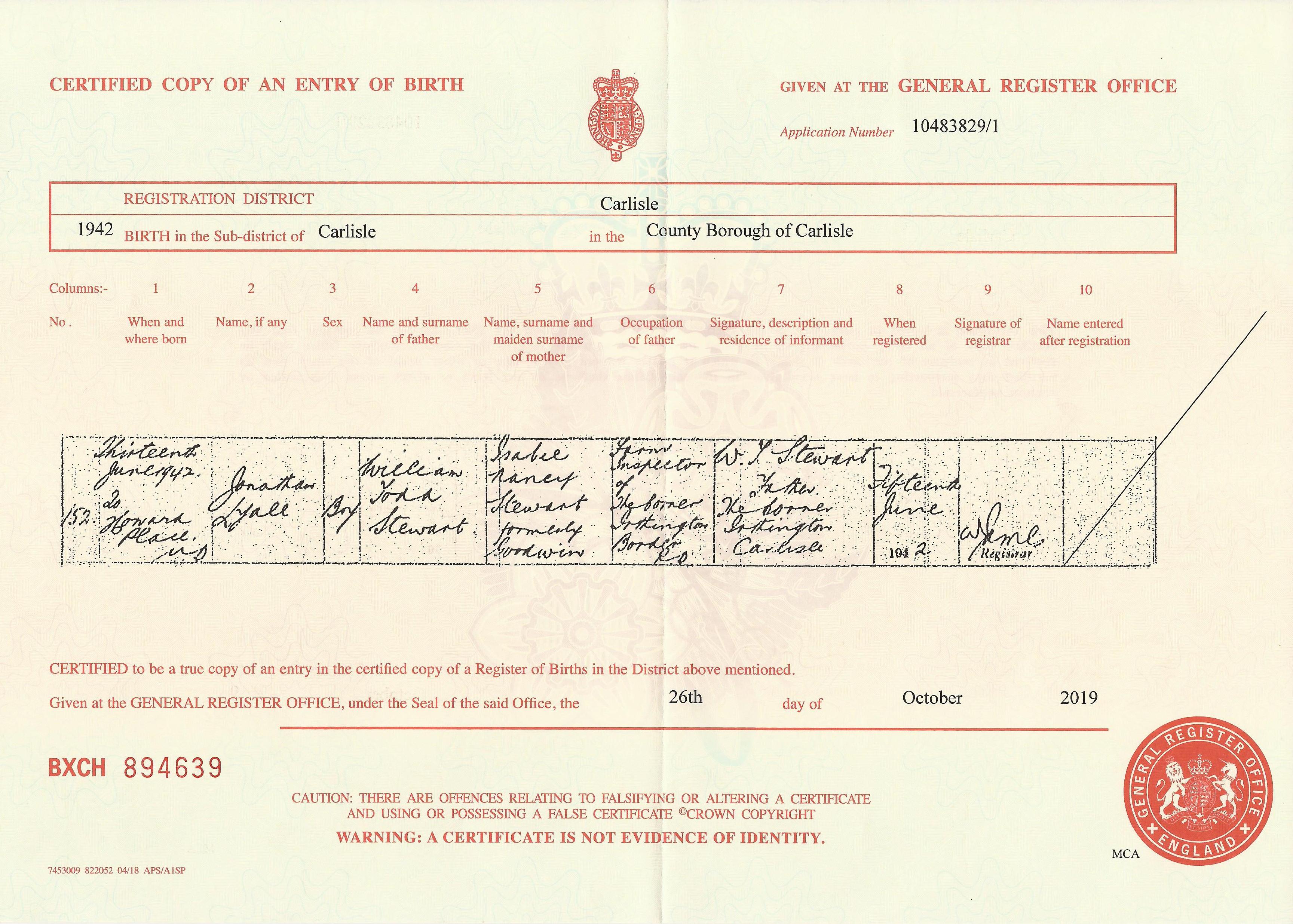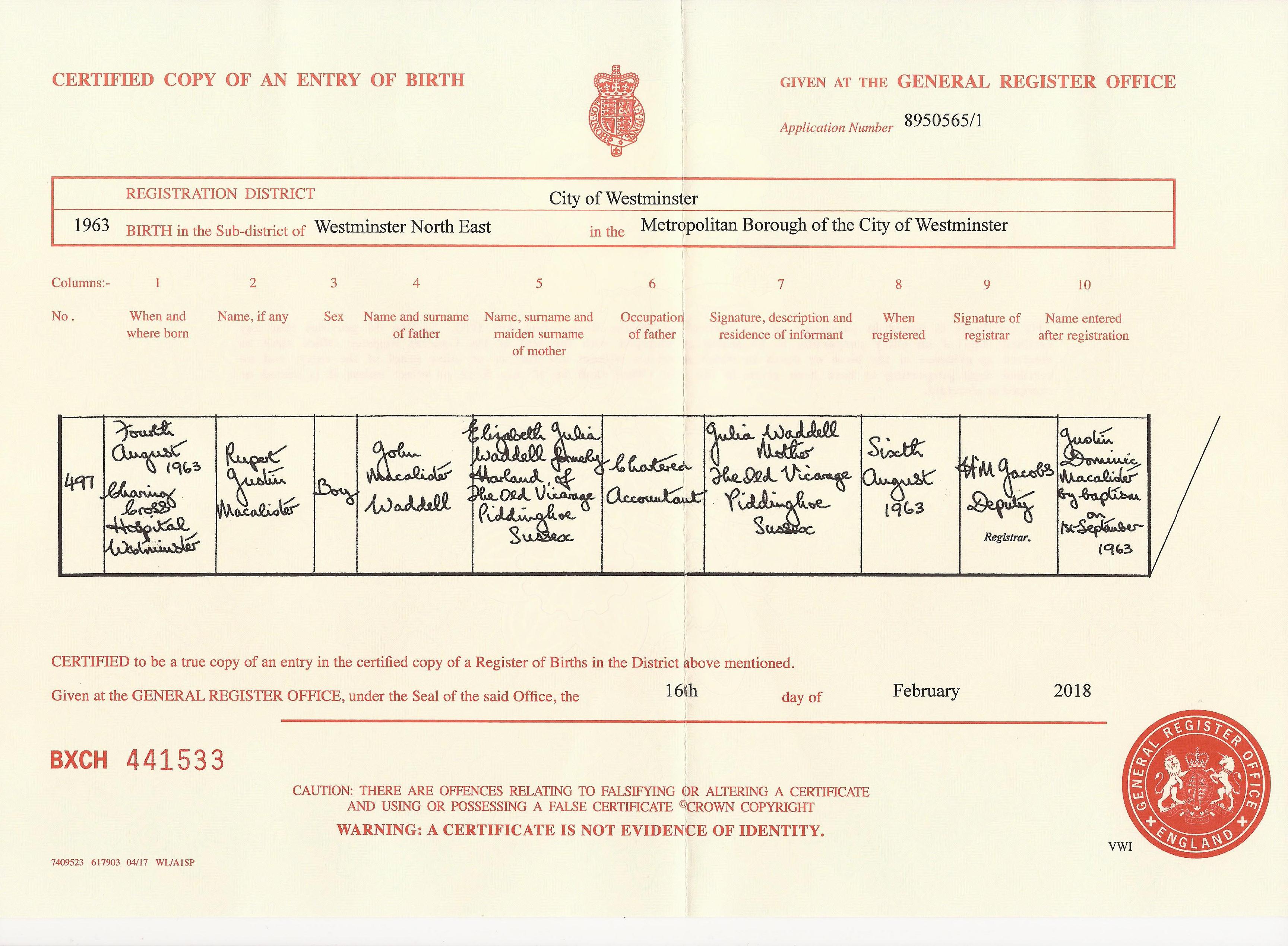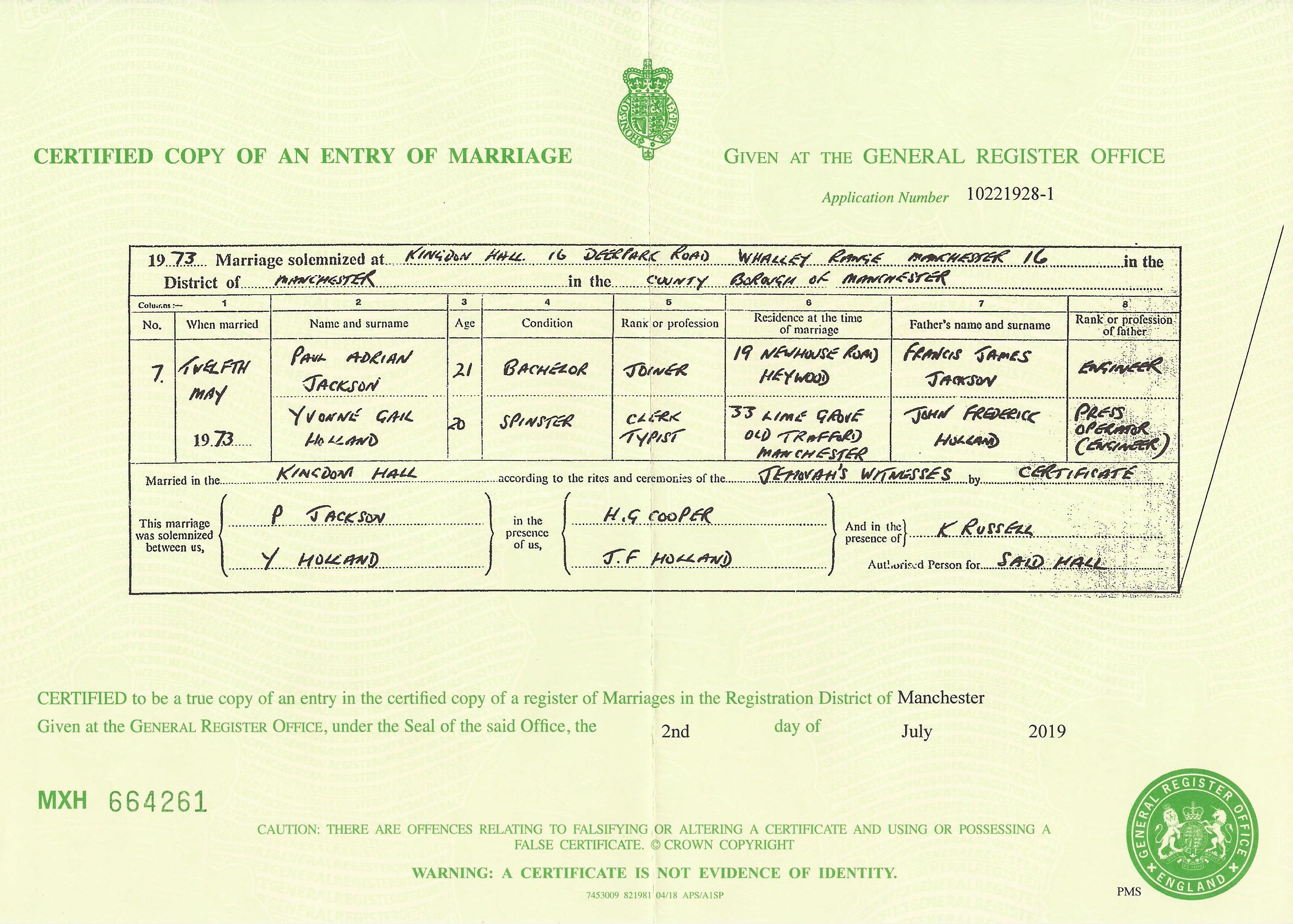 BMD (Birth, Marriage & Death) hard-copy certificates
