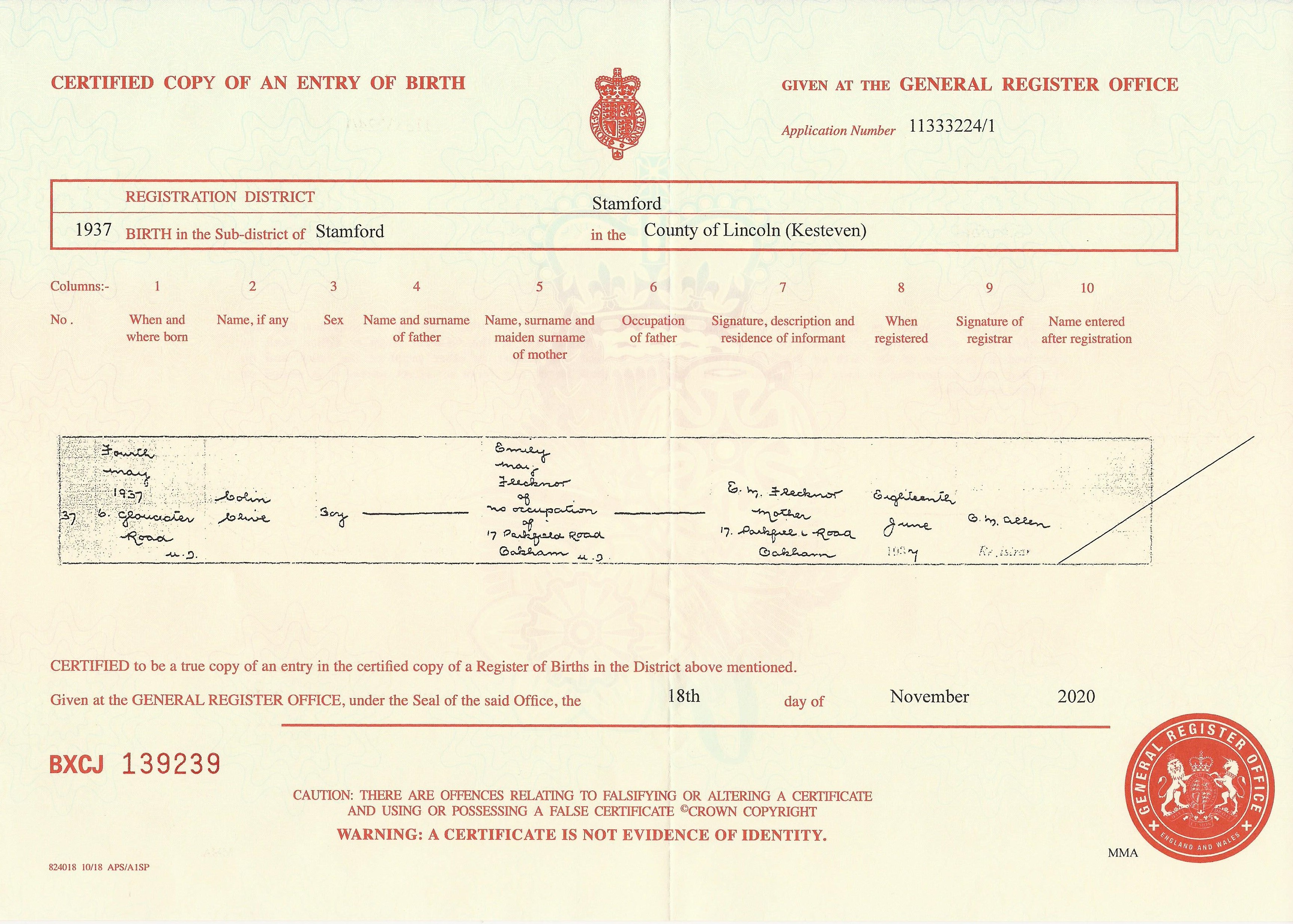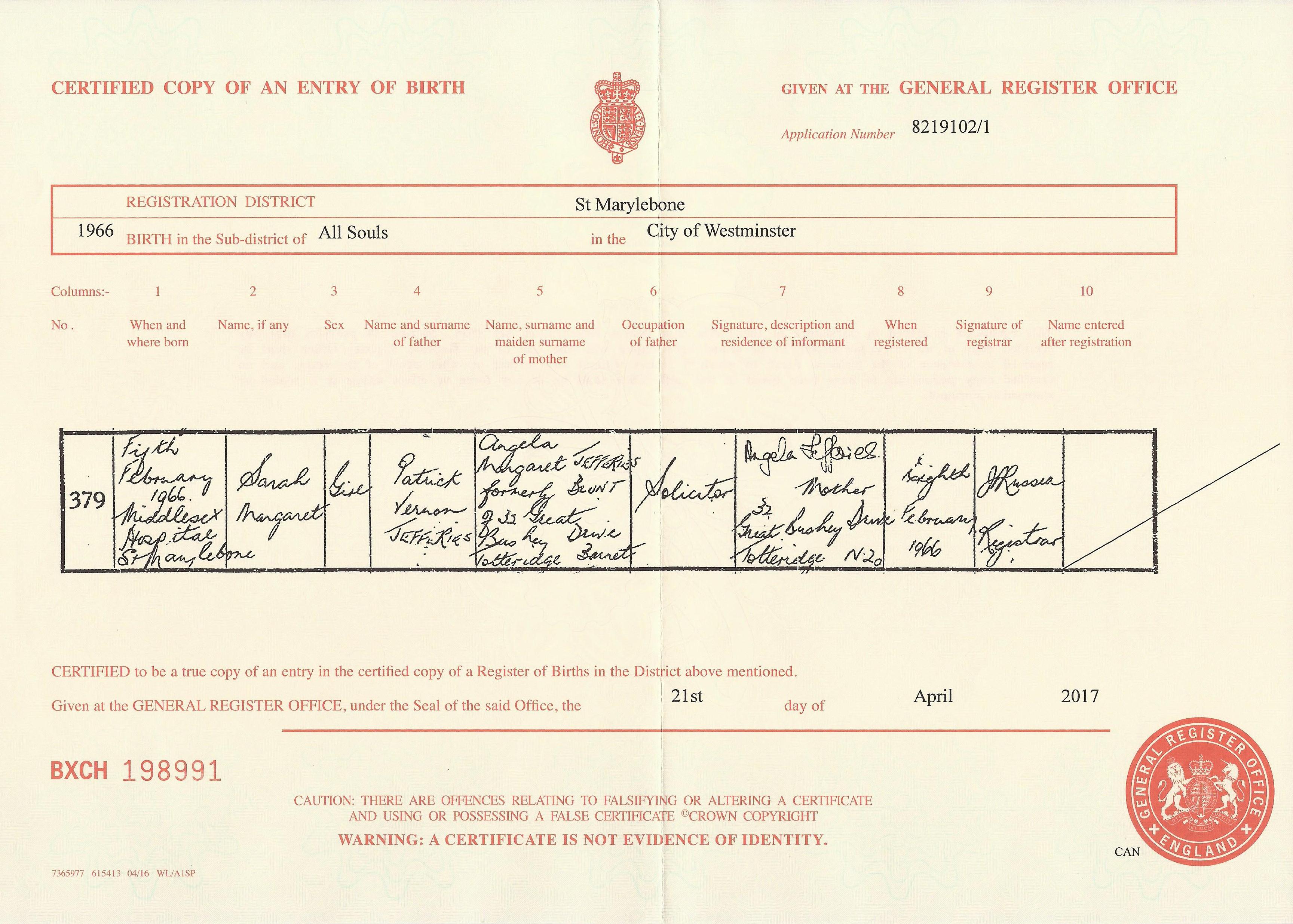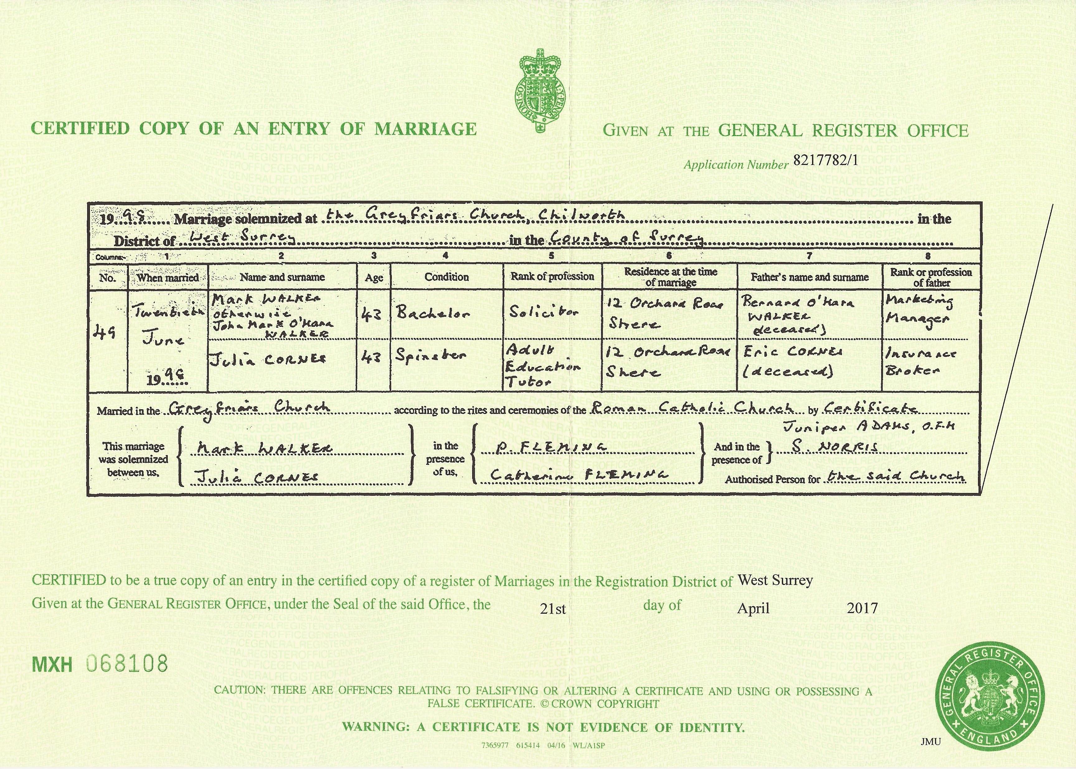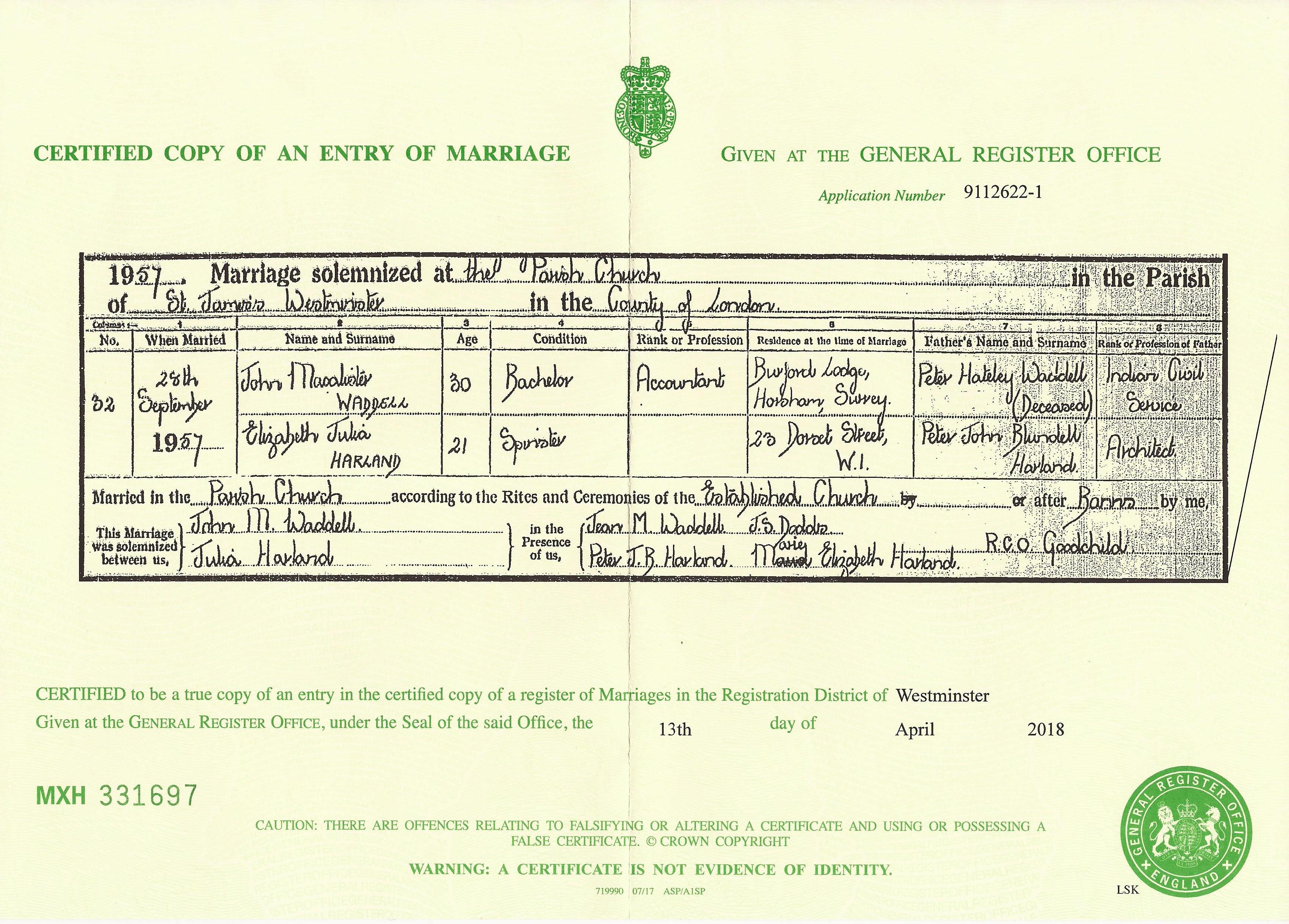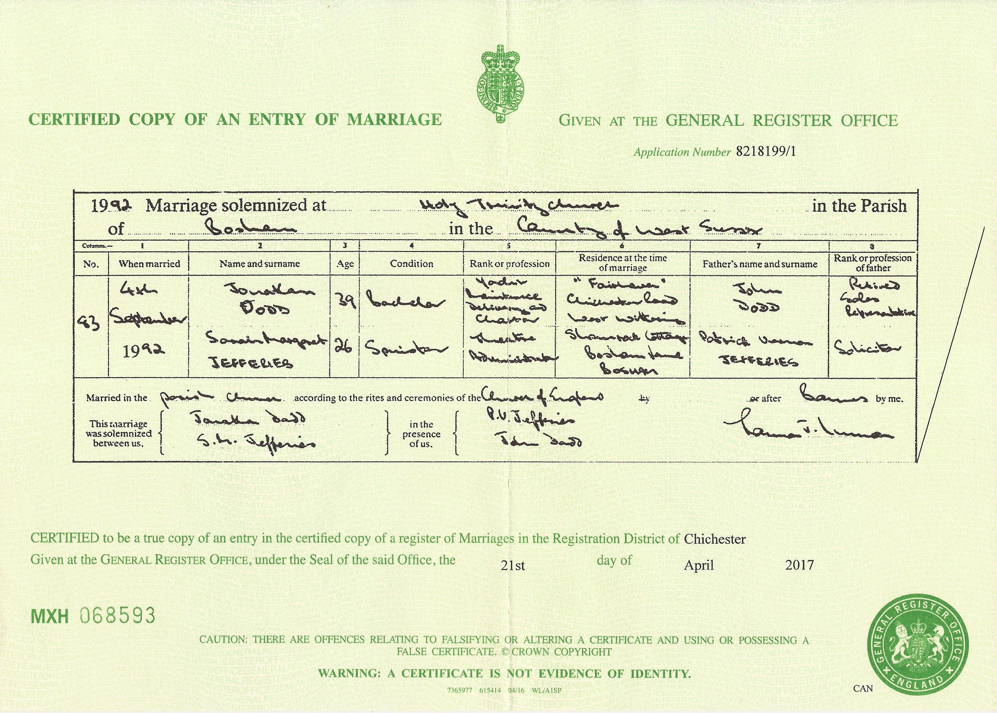BMD (Birth, Marriage & Death) hard-copy certificates