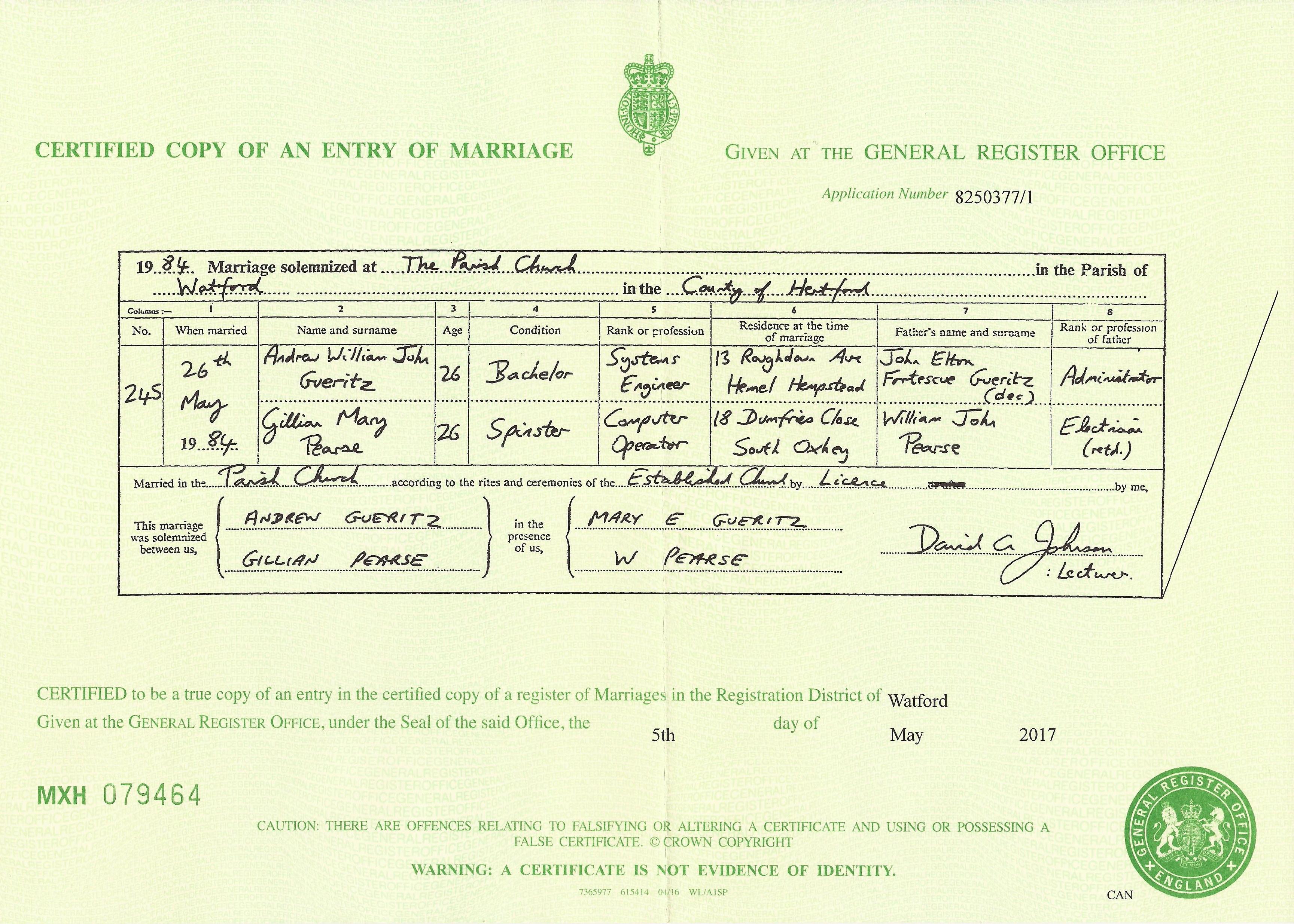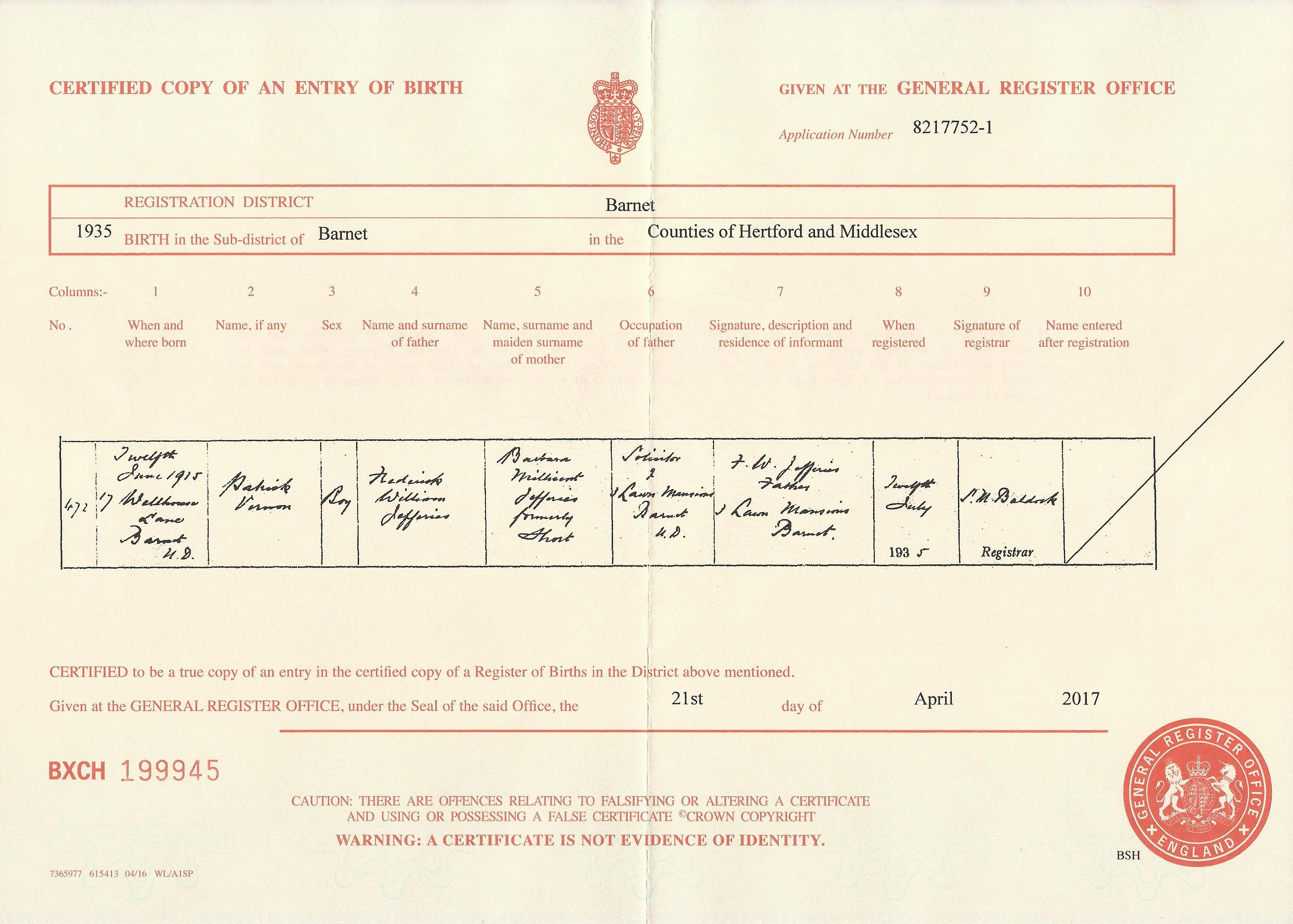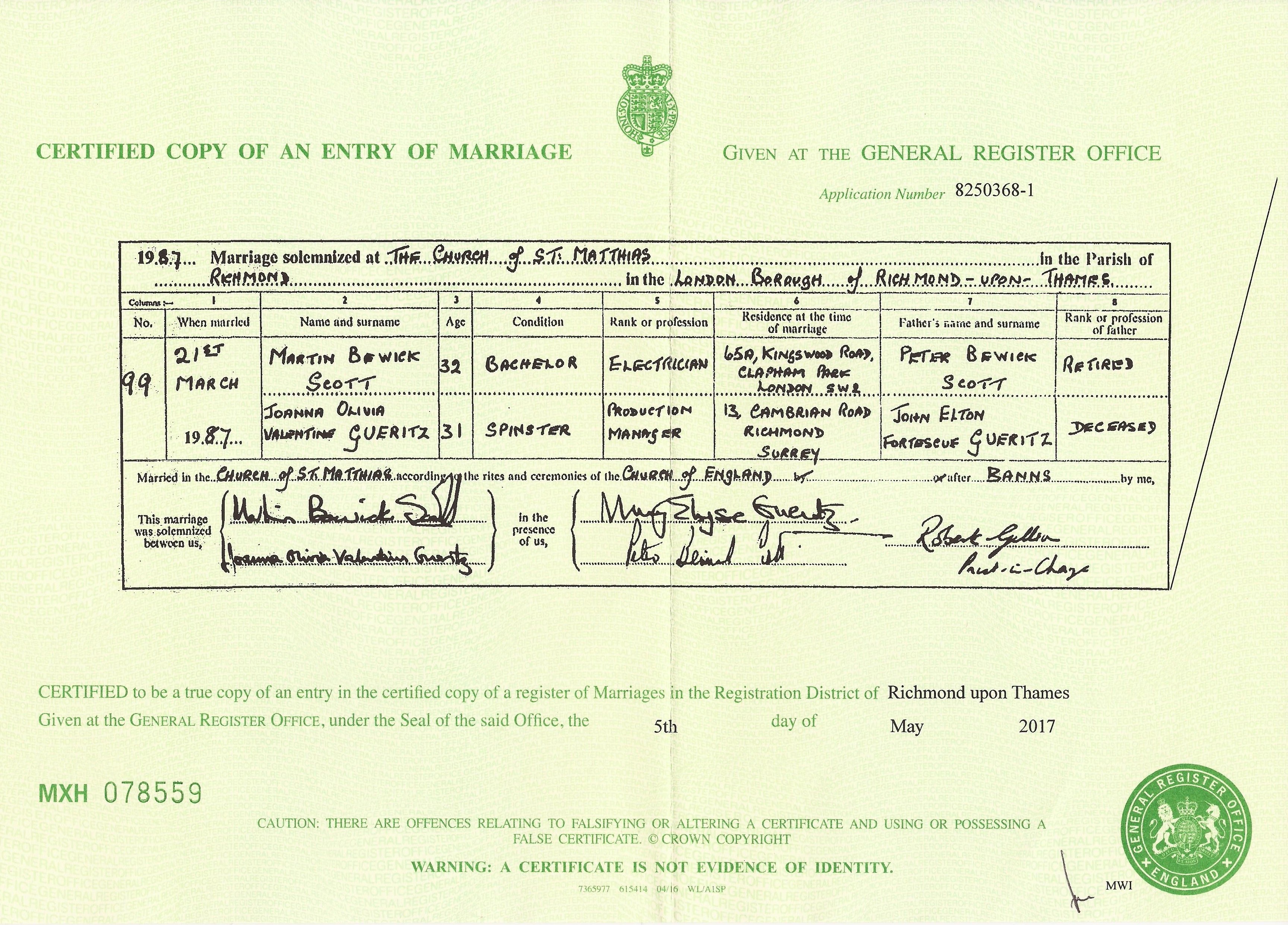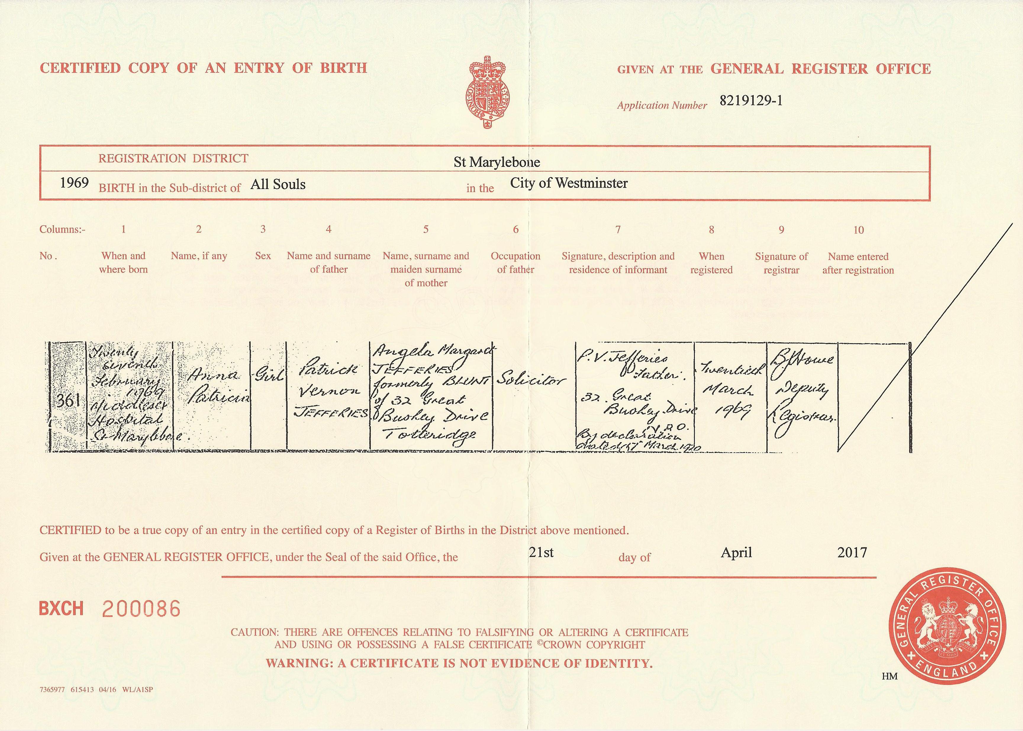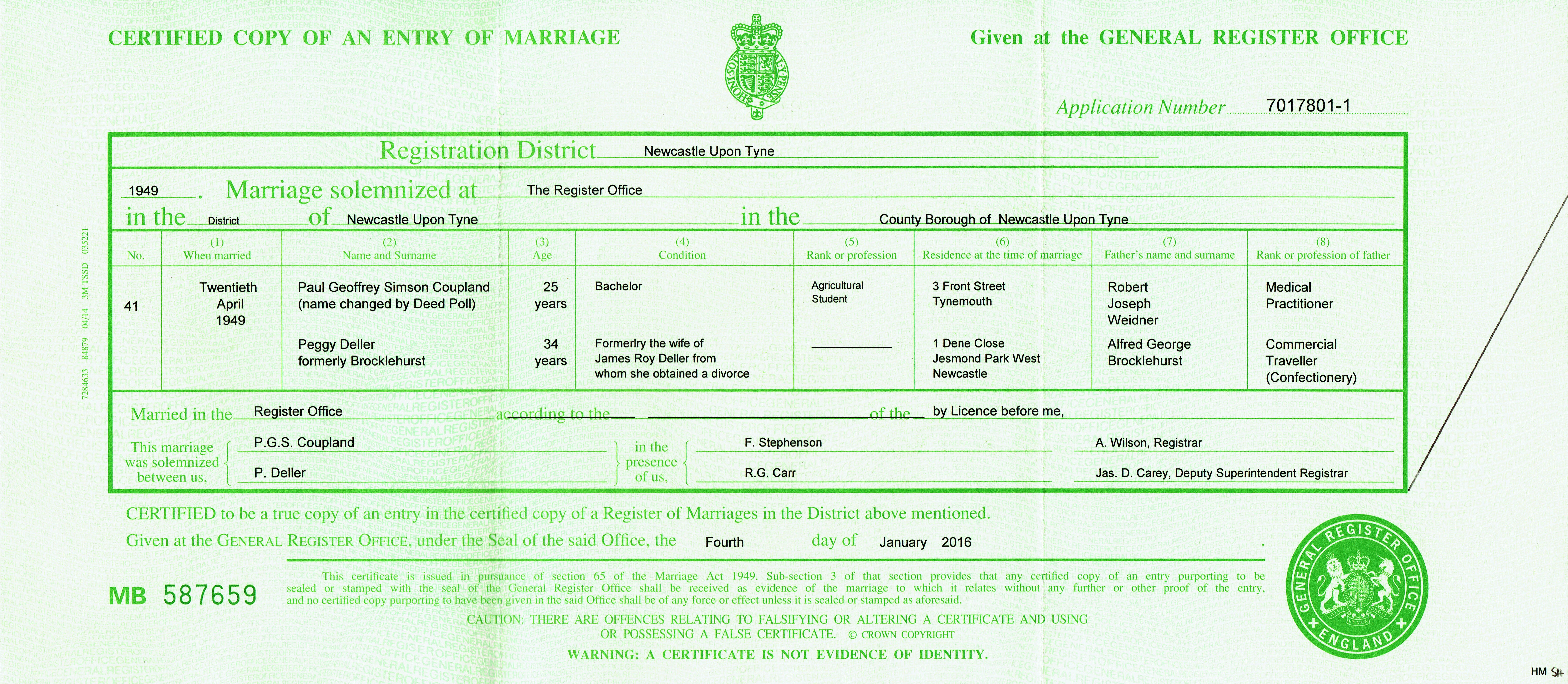 BMD (Birth, Marriage & Death) hard-copy certificates