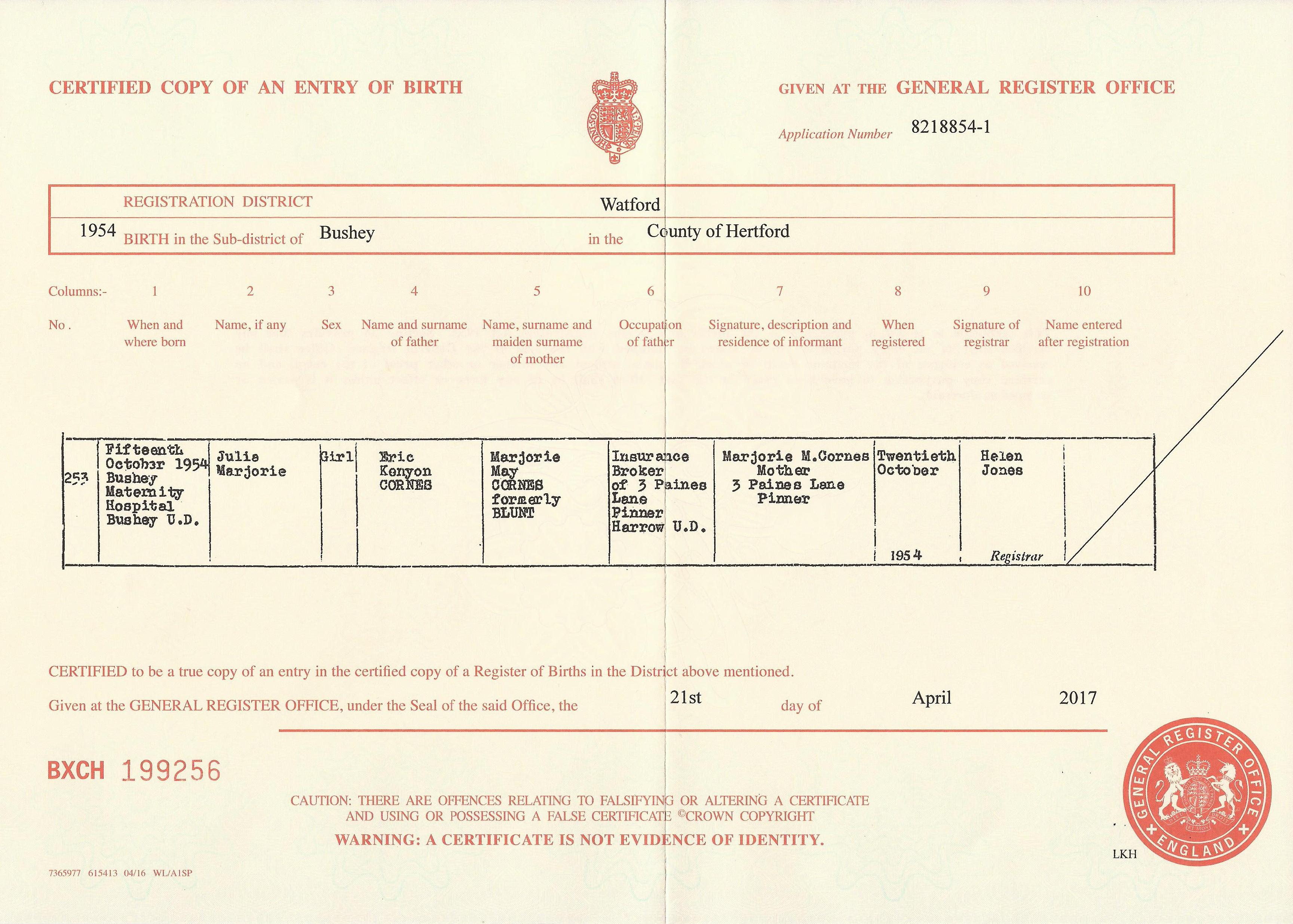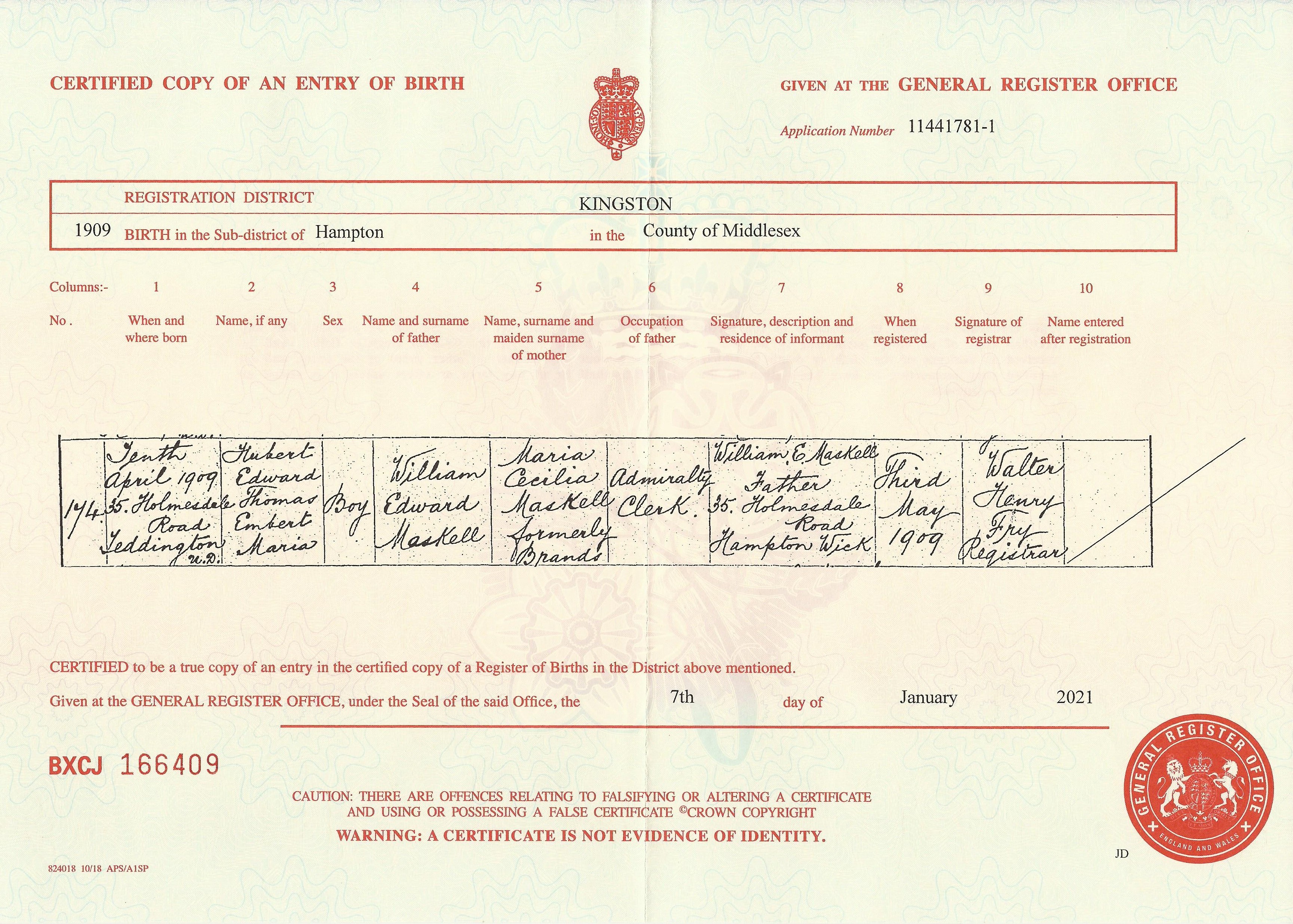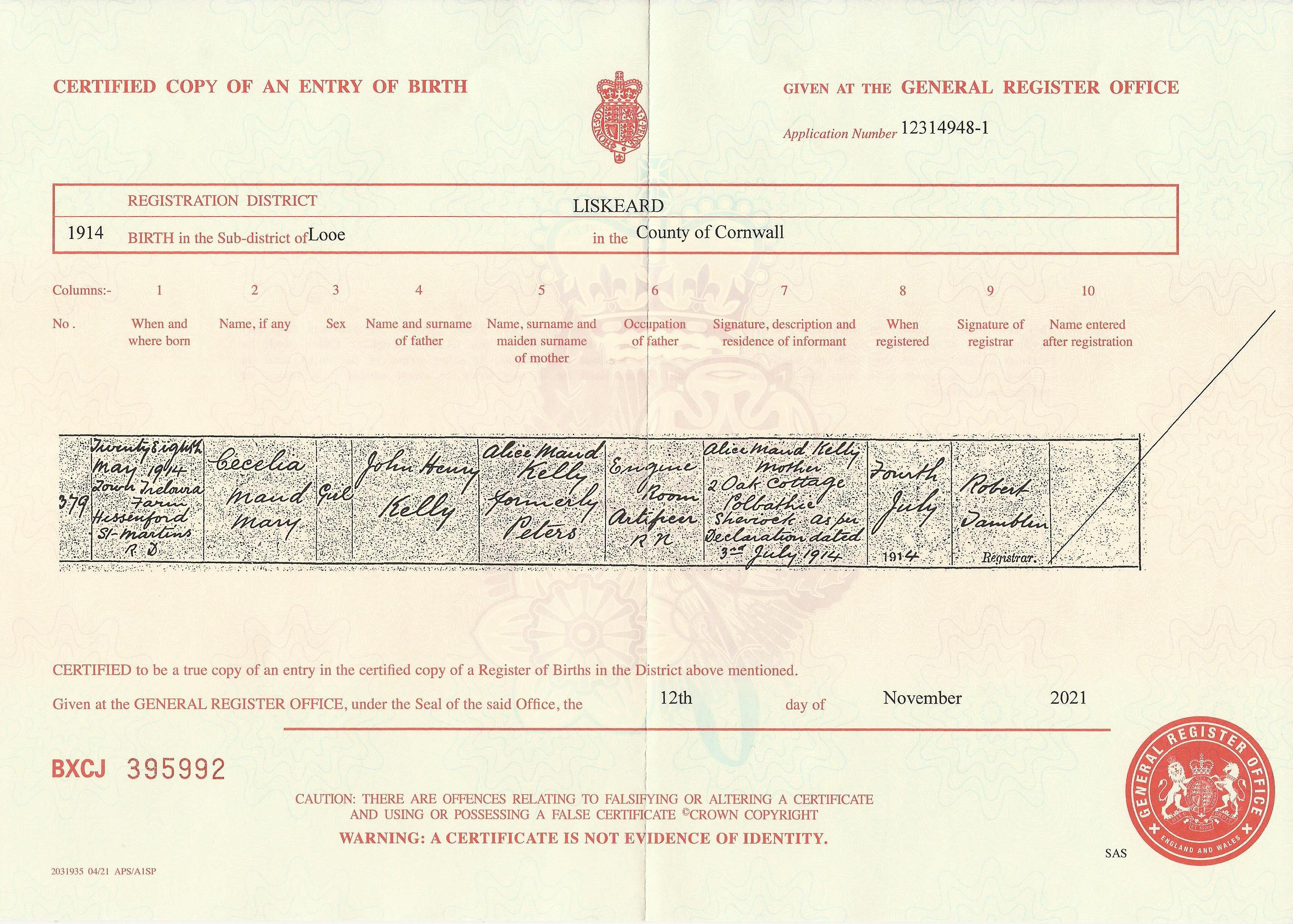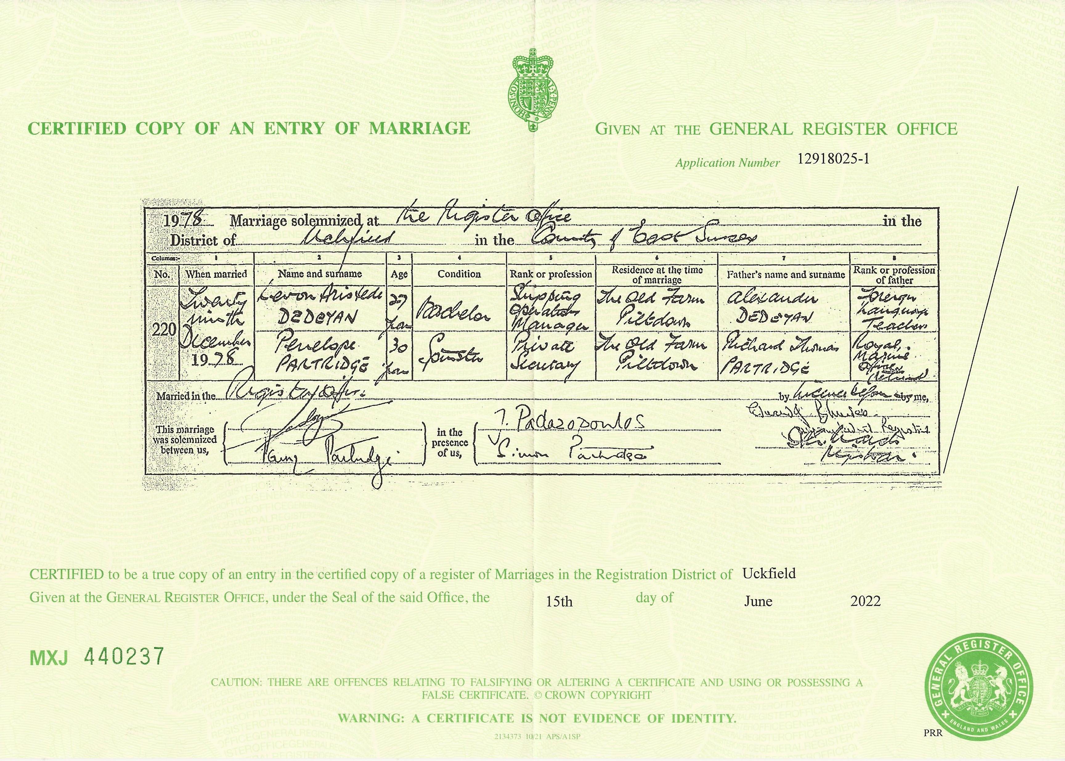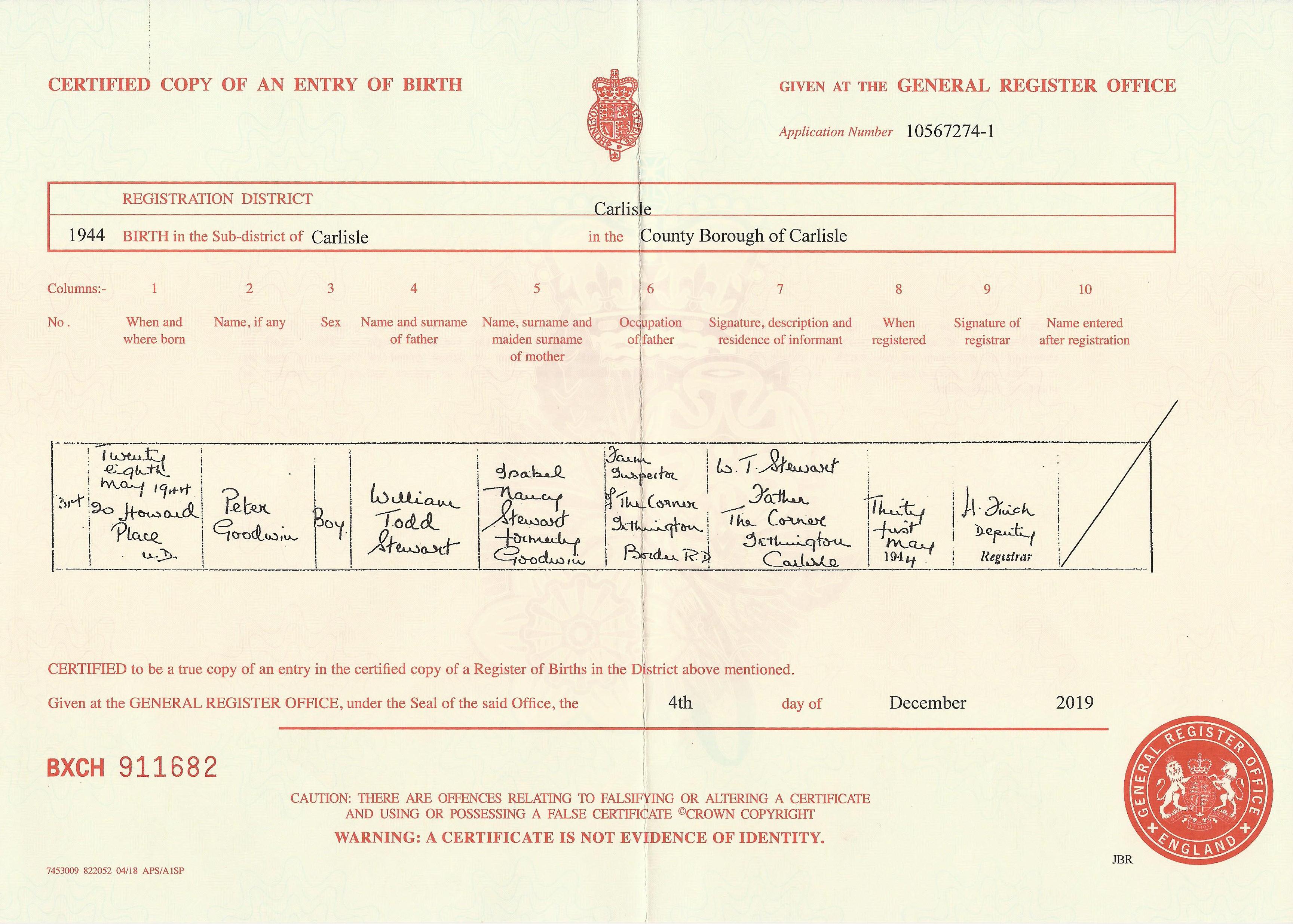 BMD (Birth, Marriage & Death) hard-copy certificates