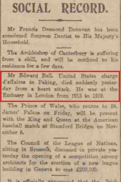 Edward Bell was a close friend of F. D. Roosevelt (later 32nd President of America) having attended Harvard University at the same time during the early 1900s.