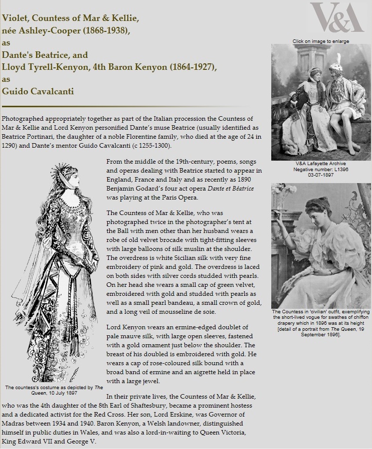 (Photographed at the Duchess of Devonshire's Costume Ball in 1897, in the rôle of Beatrice Portinari)