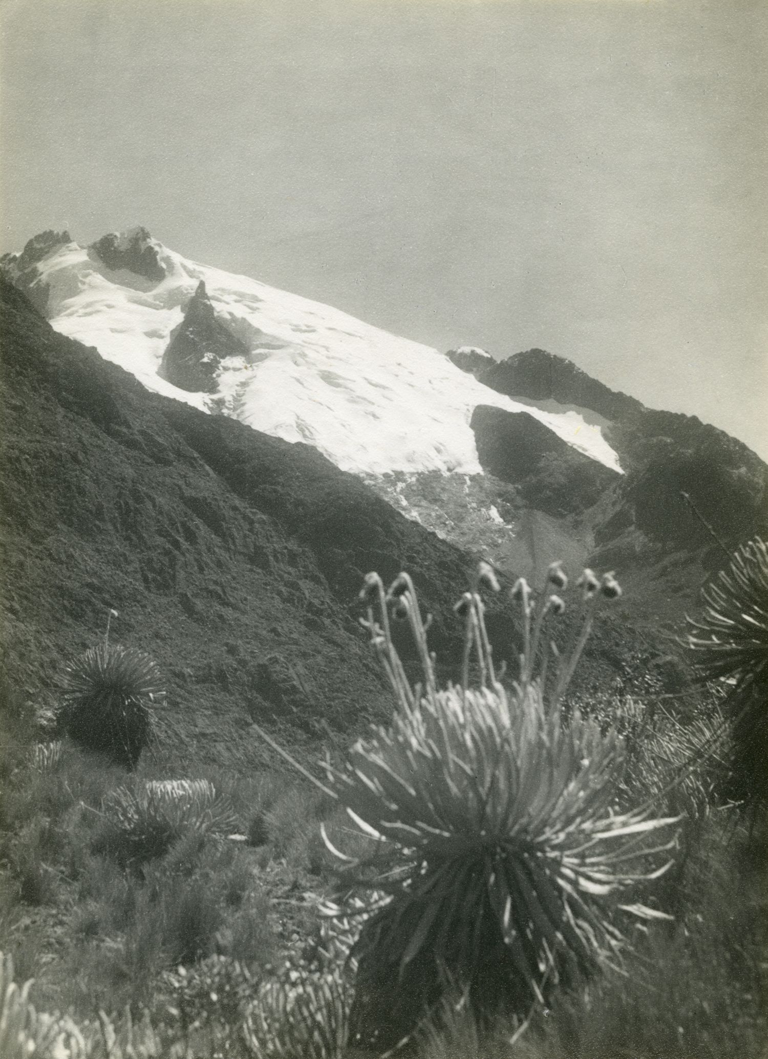 (4) Pico Humboldt from a pass above the Paramo de Molina, "Espelita Moritziana" in the  (more...)
