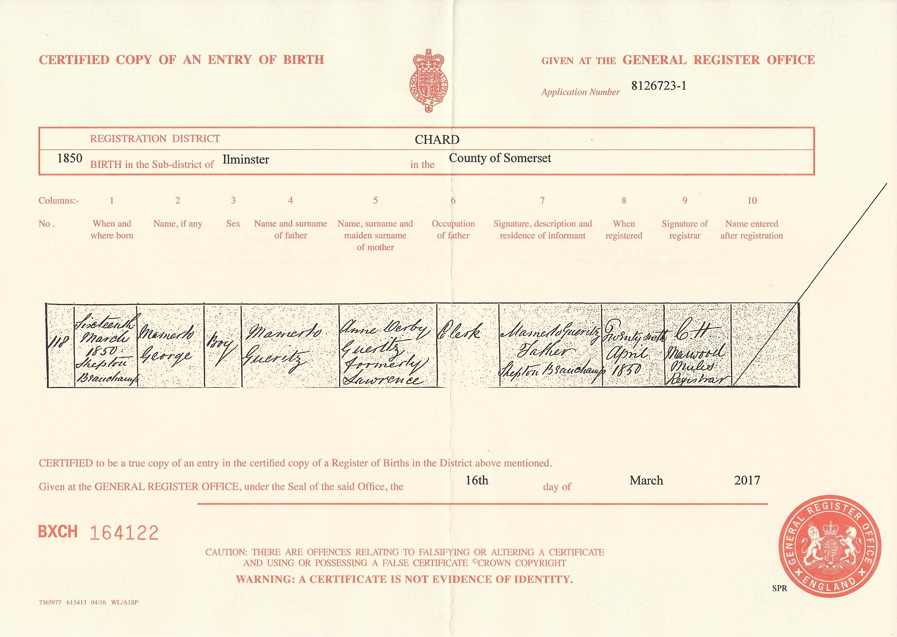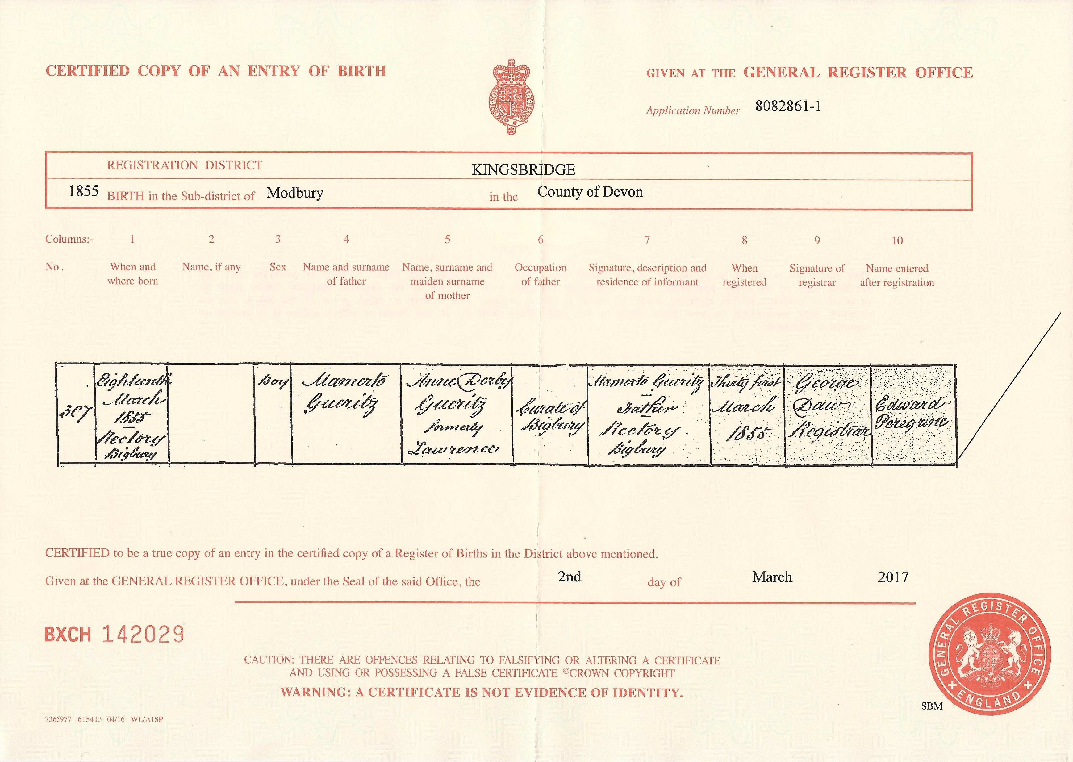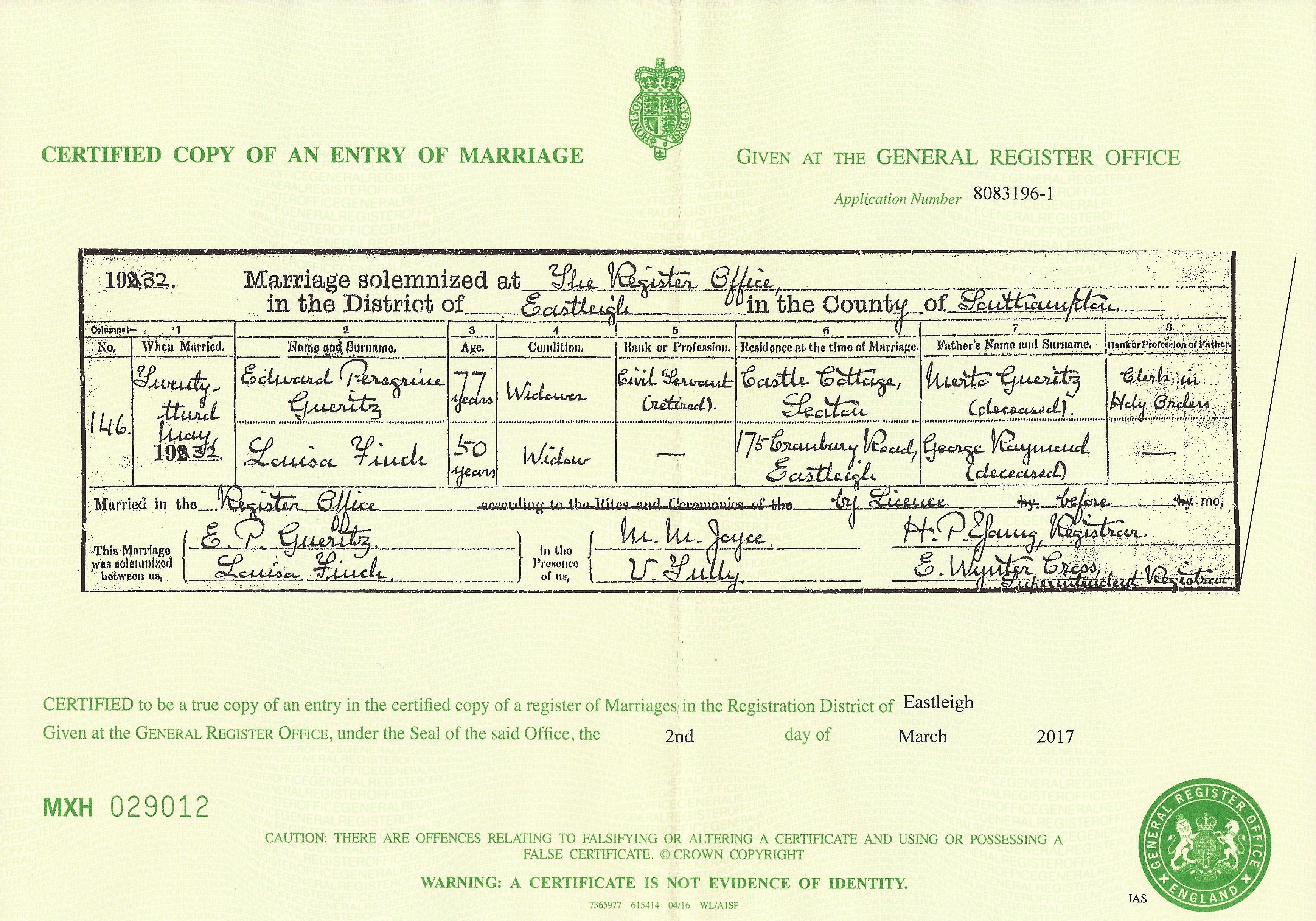 And this is therefore, as evolutionary biologists or particle physicists would put it, the Grand Synthesis, the Unified Theory – the furthest back I can take my account of the fascinatingly convoluted English origins of the Gueritz family. Their equally intriguing Spanish origins have of course already been chronicled.