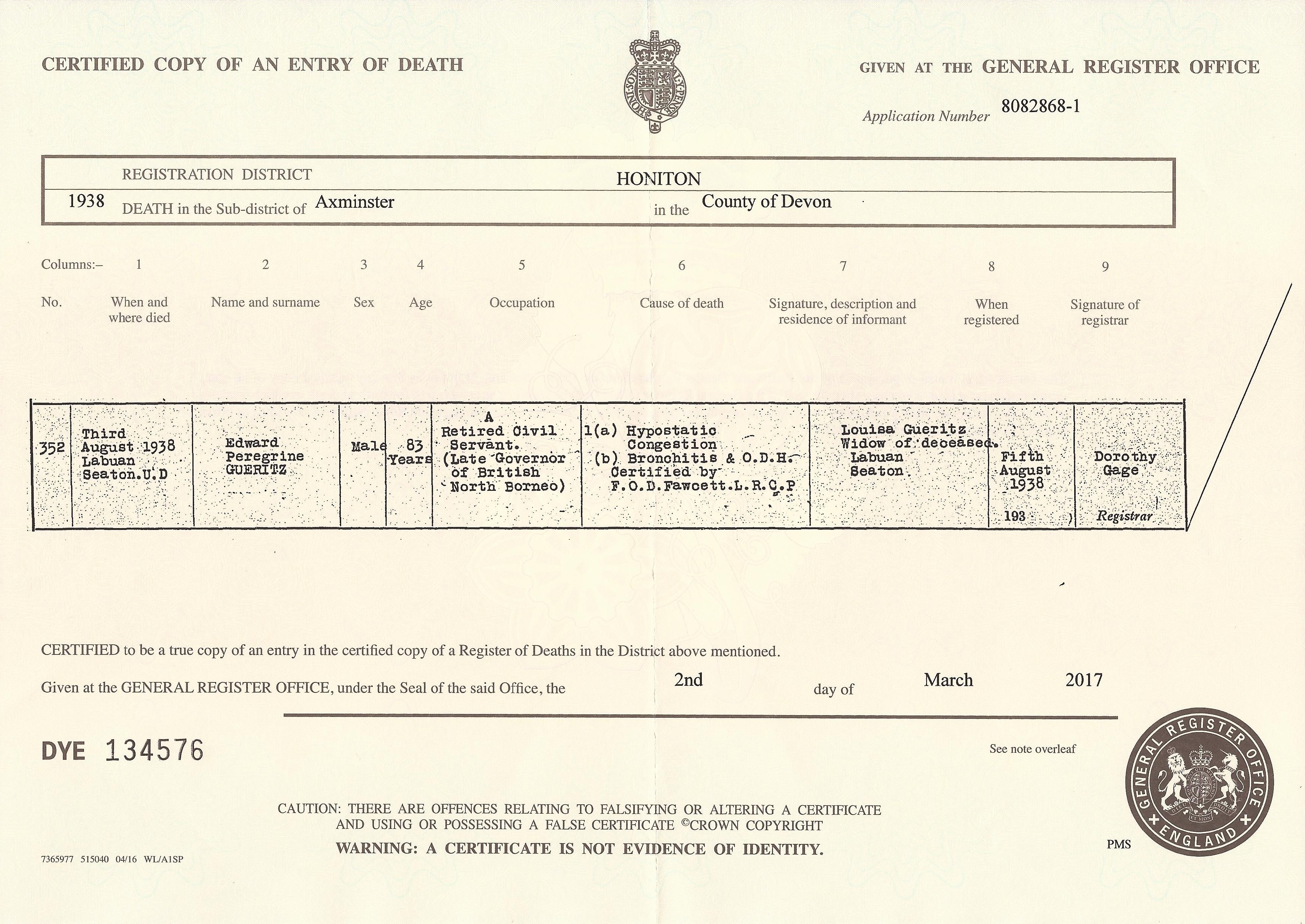 | ‑3 | Edward Peregrine Gueritz (18 Mar 1855 – 3 Aug 1938) Portrait Governor of British N Borneo |
