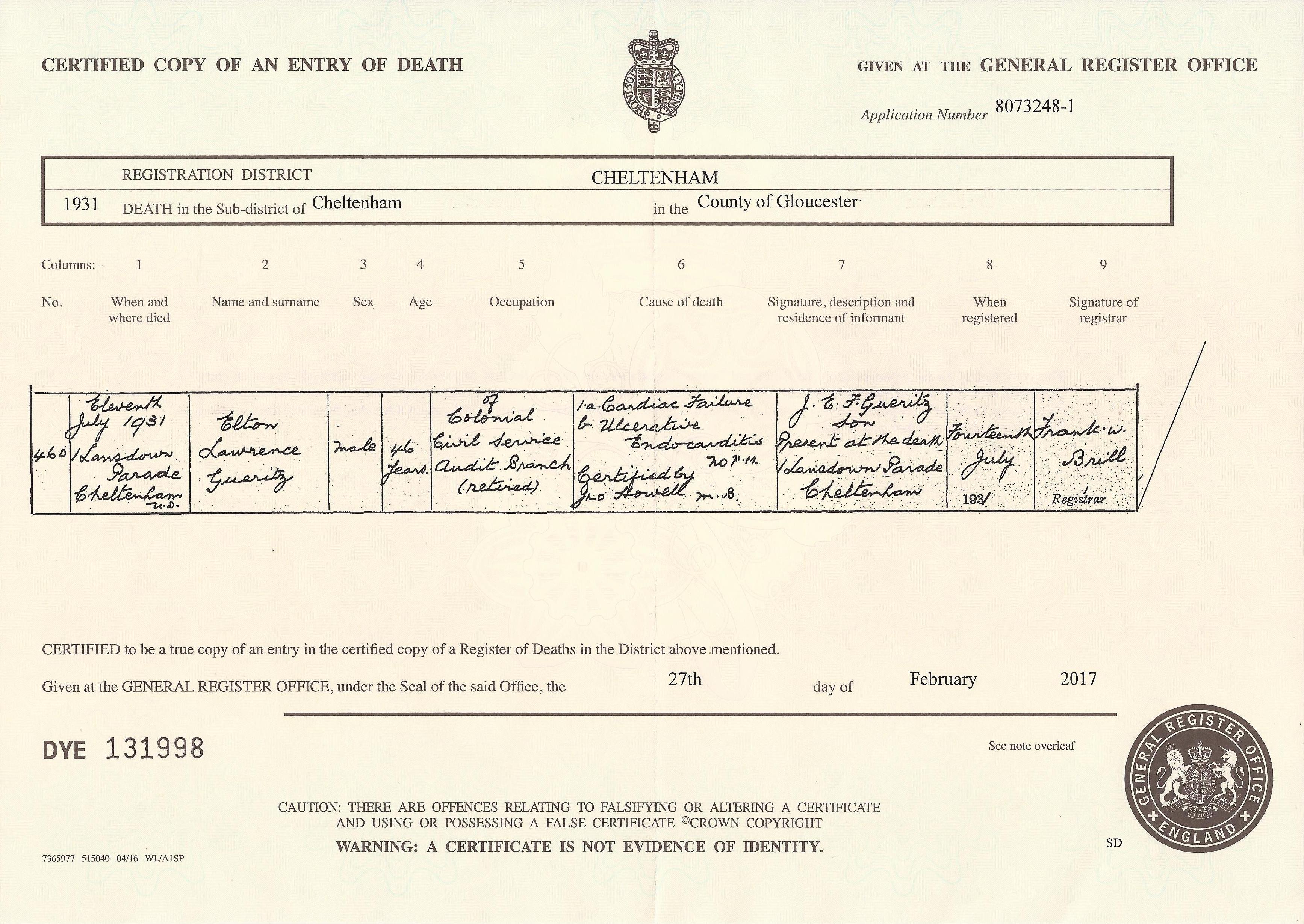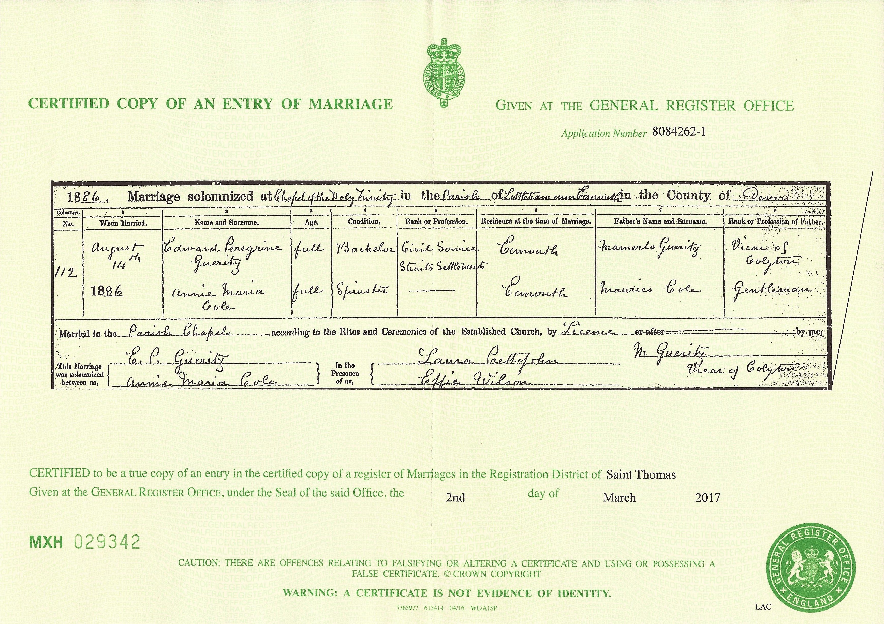 Amanda Louise Gueritz (b 20 Mar 1949) Guy Elton Lawrence Gueritz (b 4 Jan 1952, Singapore) |