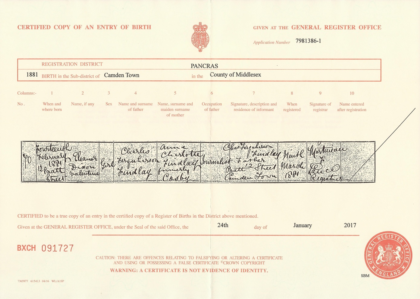 But our own (purely geographical) removal intervened in early 2015, and that plan was shelved. However, a very capable researcher has now (Aug 2018) completed the mission on my behalf.
