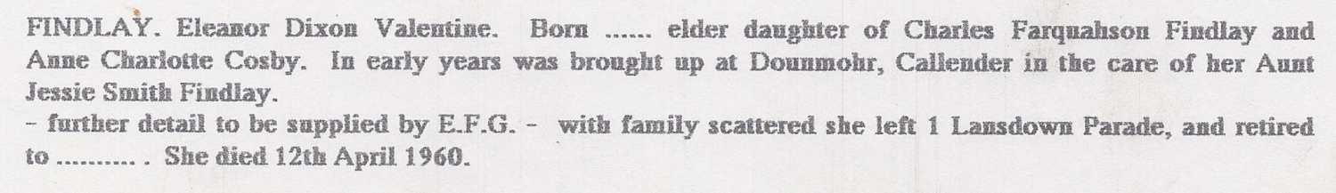 The narrative that follows is reproduced from Alexander (Sandy) Waddell's invaluable summary in his biographical document FINDLAY WHO'S WHO.