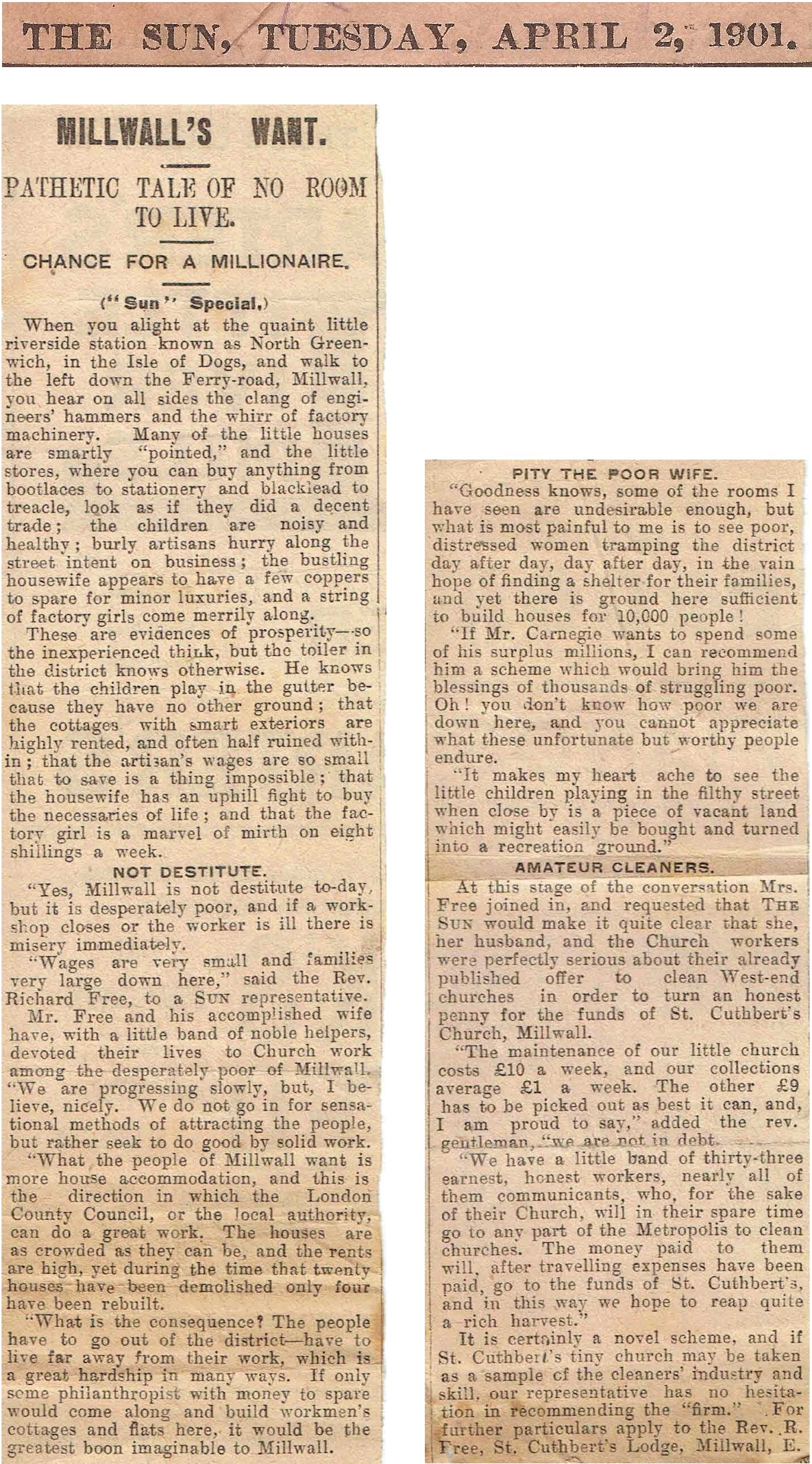 If you've already read about the Findlay sisters' epic round-trip from Callender to Millwall, or even if you haven't, you might like to know more about the remarkable Rev and Mrs Free, and their admirable ministry in possibly the toughest parish imaginable.