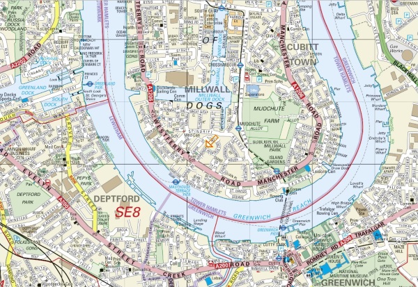 The Isle of Dogs is a pendulous area enclosed by a large meander of the River Thames as it passes through the East End of London. It is surrounded by some of the most evocative working-class areas of Dickensian and Sherlock Holmesian London – to the northwest are Shoreditch, Bethnal Green, Bow and Stepney – to the west are Bermondsey, Camberwell and Deptford – and to the south and southeast lies Greenwich, with its historic maritime and Pepysian connections.