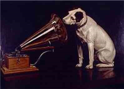 Unsurprisingly when Francis Barraud painted the picture below (which he called Dog looking at and listening to a Phonograph) in 1898, he chose a Jack Russell as his model. The picture later became known as His Master's Voice forever to be associated with the record company of that name - an image which spread throughout the world. Parson Russell was dead by then but his lively and slightly comical little dogs lived on.