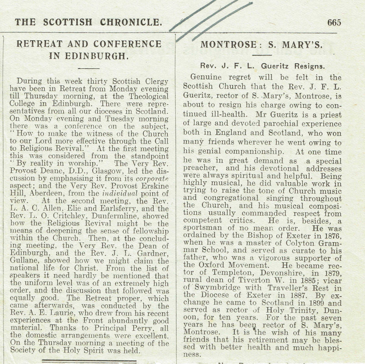 Rector, St Mary and St Peter, Montrose, Angus (1909-1916)