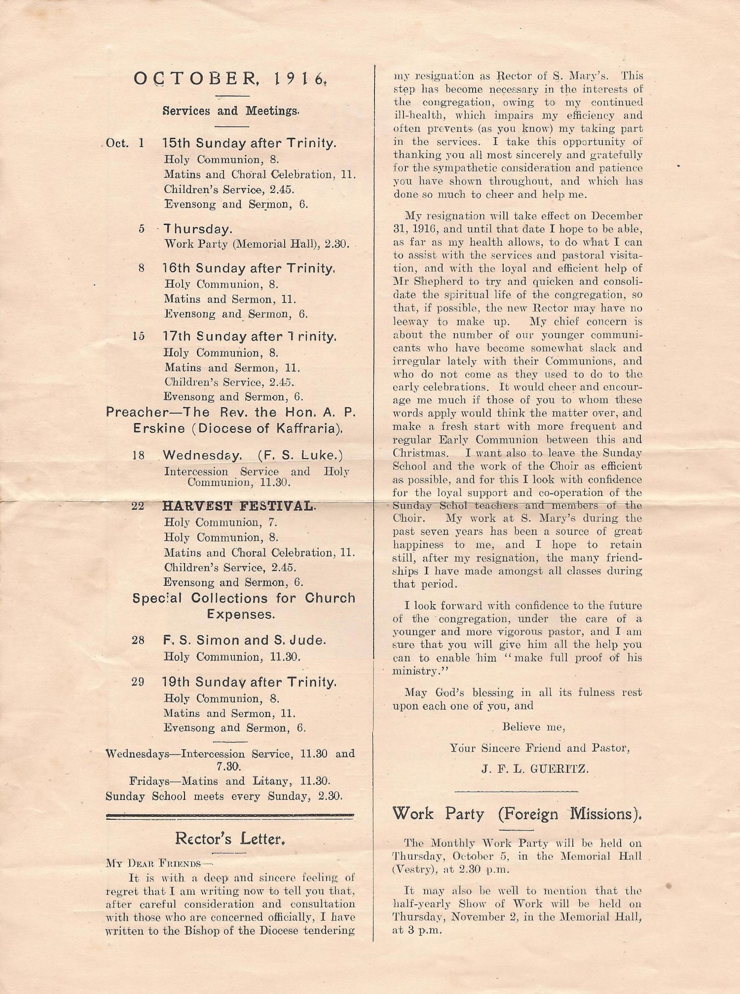 The Rev José Gueritz's life was punctuated by the relentless loss of his close family – his elder brother Mamerto George Gueritz and his younger sister Antonia Anne Gueritz both died, unmarried, in 1884; his younger brothers Edmund Peregrine Gueritz and Henry Francis Gueritz predeceased him in 1938 and 1929 respectively, and only his sister Mary Louisa Gueritz, progenitrix of the Mortimer branch of the family, outlived him.