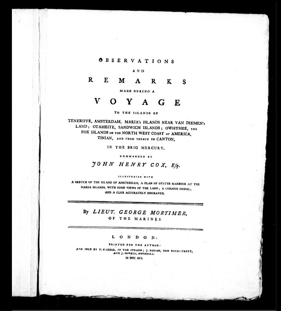 The voyage began on 26 Feb 1789 in London and ended in Canton on 1 Jan 1790. Mortimer gives no clue as to how he then returned to England, but we can guess that he probably paid for a berth home in an East India Company vessel. His narrative was published on 25 Mar 1791.