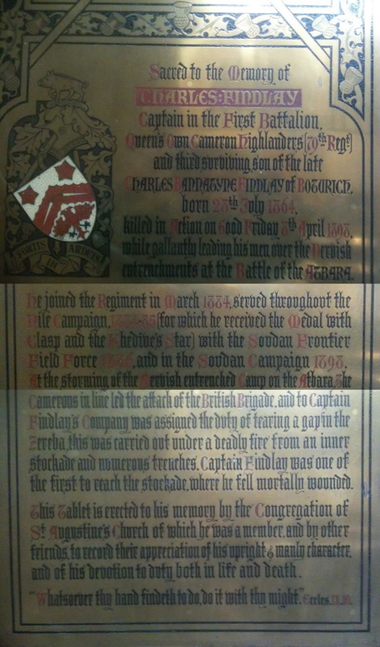A Google search on "Captain Charles Findlay, Nile Expedition 1898" found an immediate hit on Alex MacLennan's webpage as above.