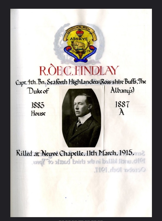 Robert de Cardonnel Elmsall Findlay (26 Apr 1868 – KIA 11 Mar 1915) | ||