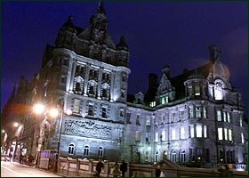 In 1881, the dying Disraeli, told that she wanted to see him, cried: "Don't let her in; she will only want me to take a message to Albert!" The new century brought the greatest upheaval yet for the paper and its then stablemates, the Weekly Scotsman and Evening Dispatch. Born at 347 High Street, The Scotsman later moved to Cockburn Street offices, then regarded as among the finest in Britain. These became cramped, and when the North Bridge was widened, the proprietors built a 190-foot-high building – a superb flourish in English baroque, costing £500,000 – which, by 1905, with the Carlton Hotel, formed a romantic turreted gateway between the new and old towns. The building, with its showpiece marbled pillars and floors, mahogany and walnut-panelled walls, ornate ceilings and markedly plainer environment for staff, symbolised supreme commercial confidence.