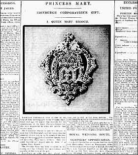 In February 1922, it published its first picture (above), of a brooch given to Princess Mary by Edinburgh Corporation. And it was the first paper in Britain to have a telephoto machine. The first picture telegraphed appeared in August 1928 and was of the pilgrimage to the Menin Gate in Paris.