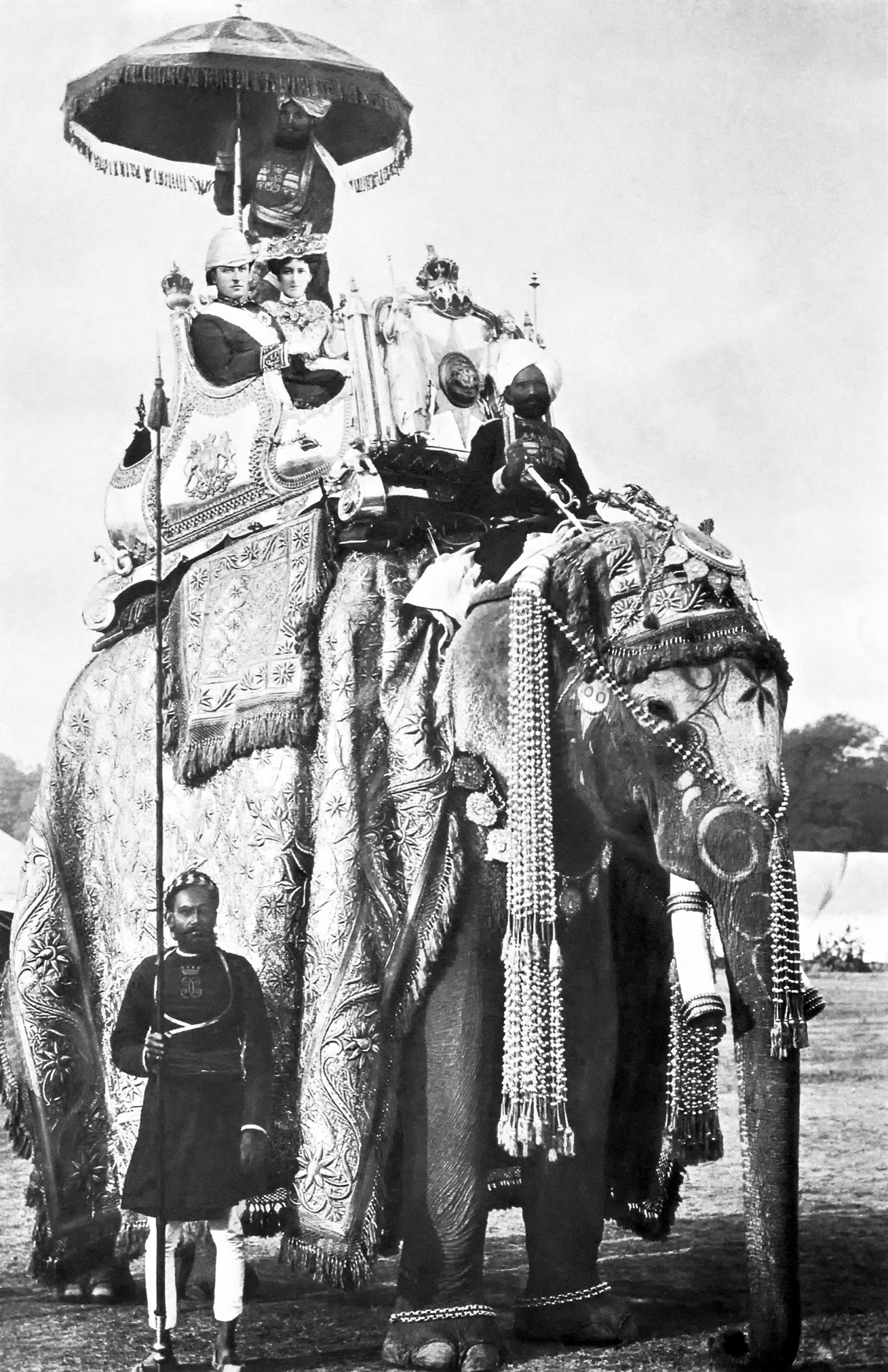 seated in a precarious howdah atop the equally noble pachyderm "Lakshman Prasad" on 29 Dec 1902