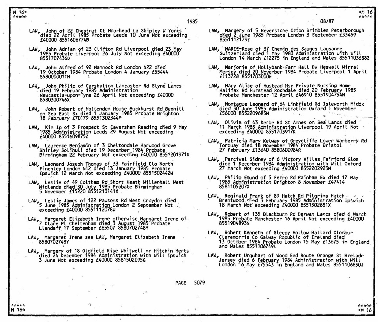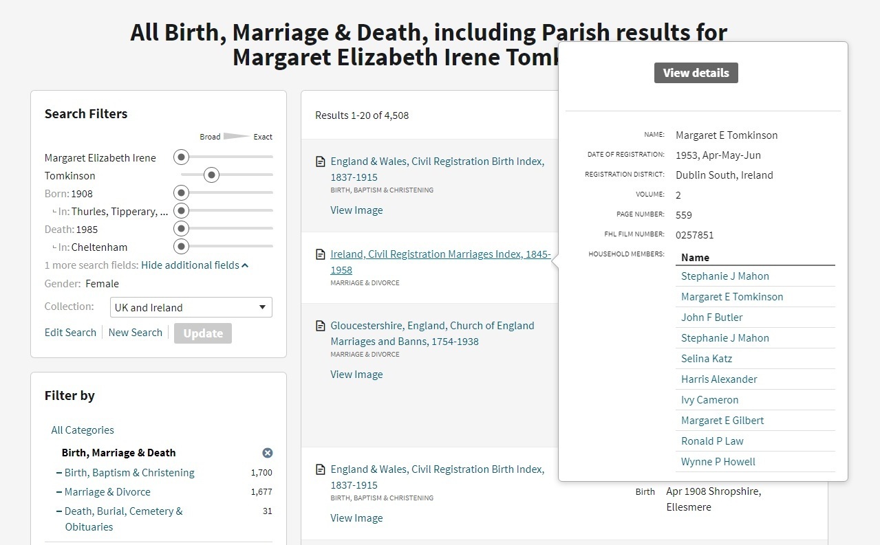 Margaret Elizabeth Irene Gilbert (1908 Q4 Thurles, 3 434 or 19 Jul 1908, Thurles – 3 Aug 1985, Cheltenham ) |