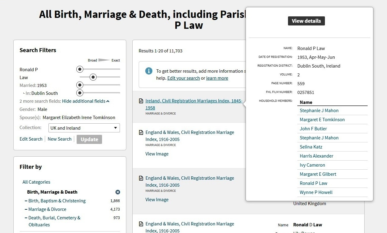 | Ronald (Ronnie) P Law (m 1953 Q2, Dublin South, 2 559) please click here and here for mutual corroboration |