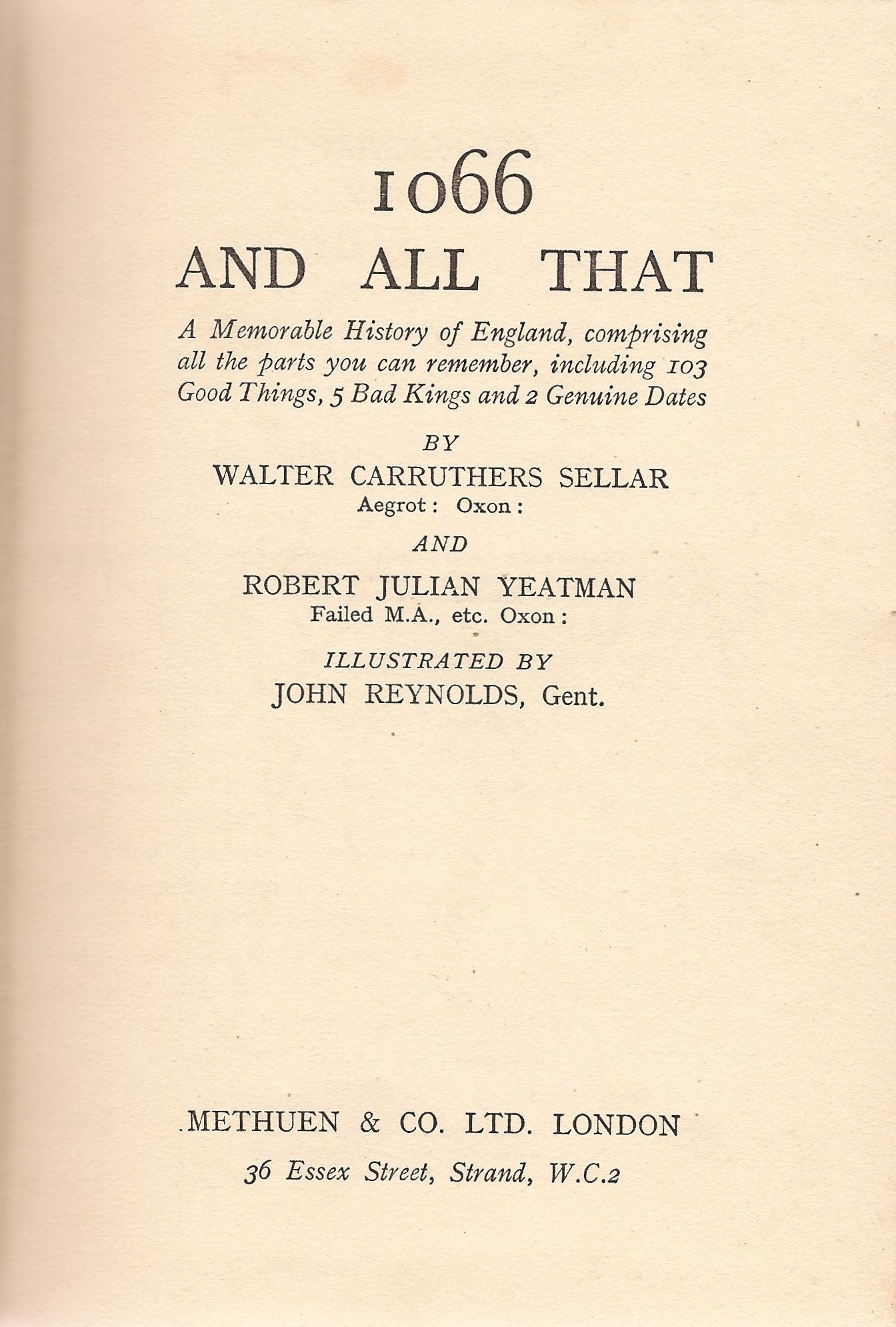 Those of us of a generation even earlier, whose principal recreation was reading, rather than all the other things nowadays that crusty old dinosaurs like me regularly demonise, will remember 1066 And All That, a wonderful parody of English history tuition, published in 1930, which did for pedagogues what Molesworth did for their pupils. If you too can never remember (or care) who came out top, the Picts, the Scots or the Irish, this is the book for you, because it doesn’t tell you unambiguously either.