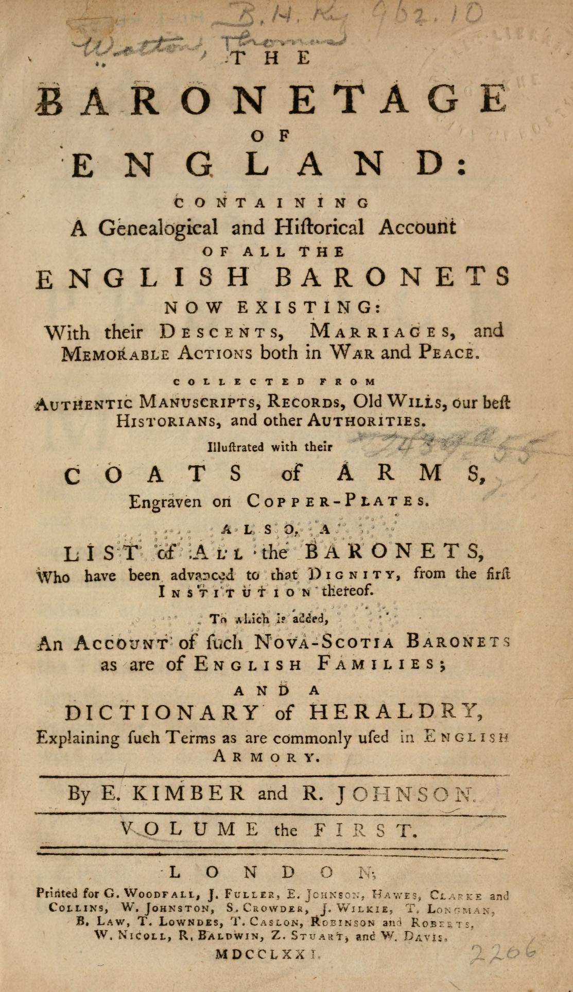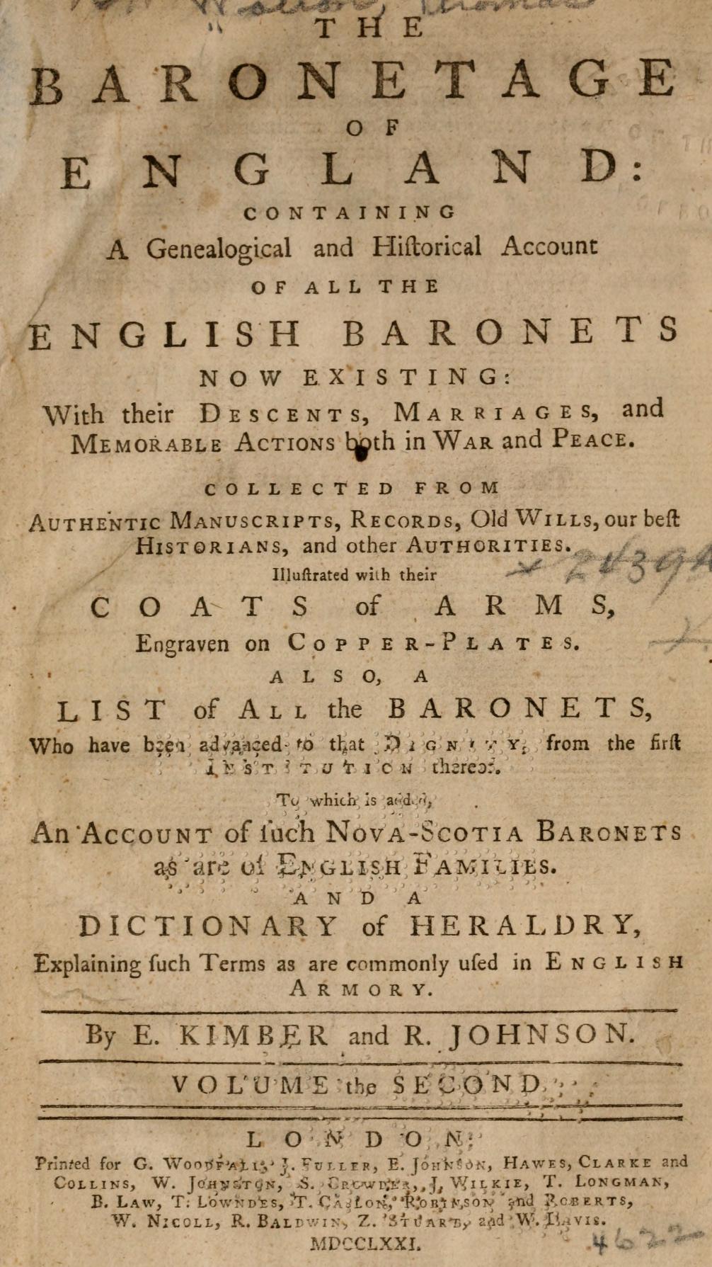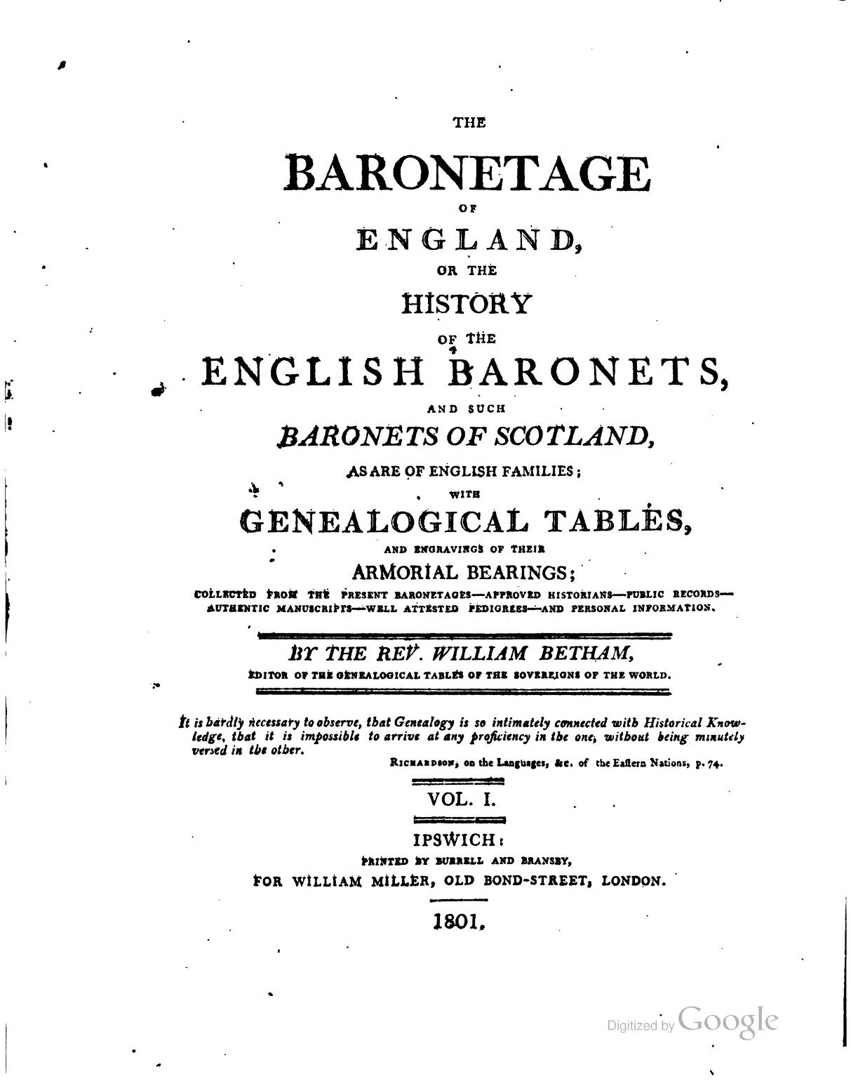 As did the Rev William Betham, who evidently relied pretty heavily on Kimber and Johnson's text, but, to his credit, structured and formatted it to make for much easier reading: