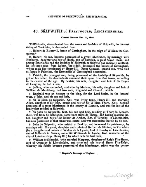 Skipwith baronets, of Prestwould (1622)