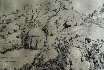 The fight in the Matopos, showing the type of terrrain and closeness of belligerents.