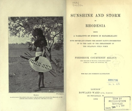 Frederick Courtenay Selous, Sunshine and Storm in Rhodesia.