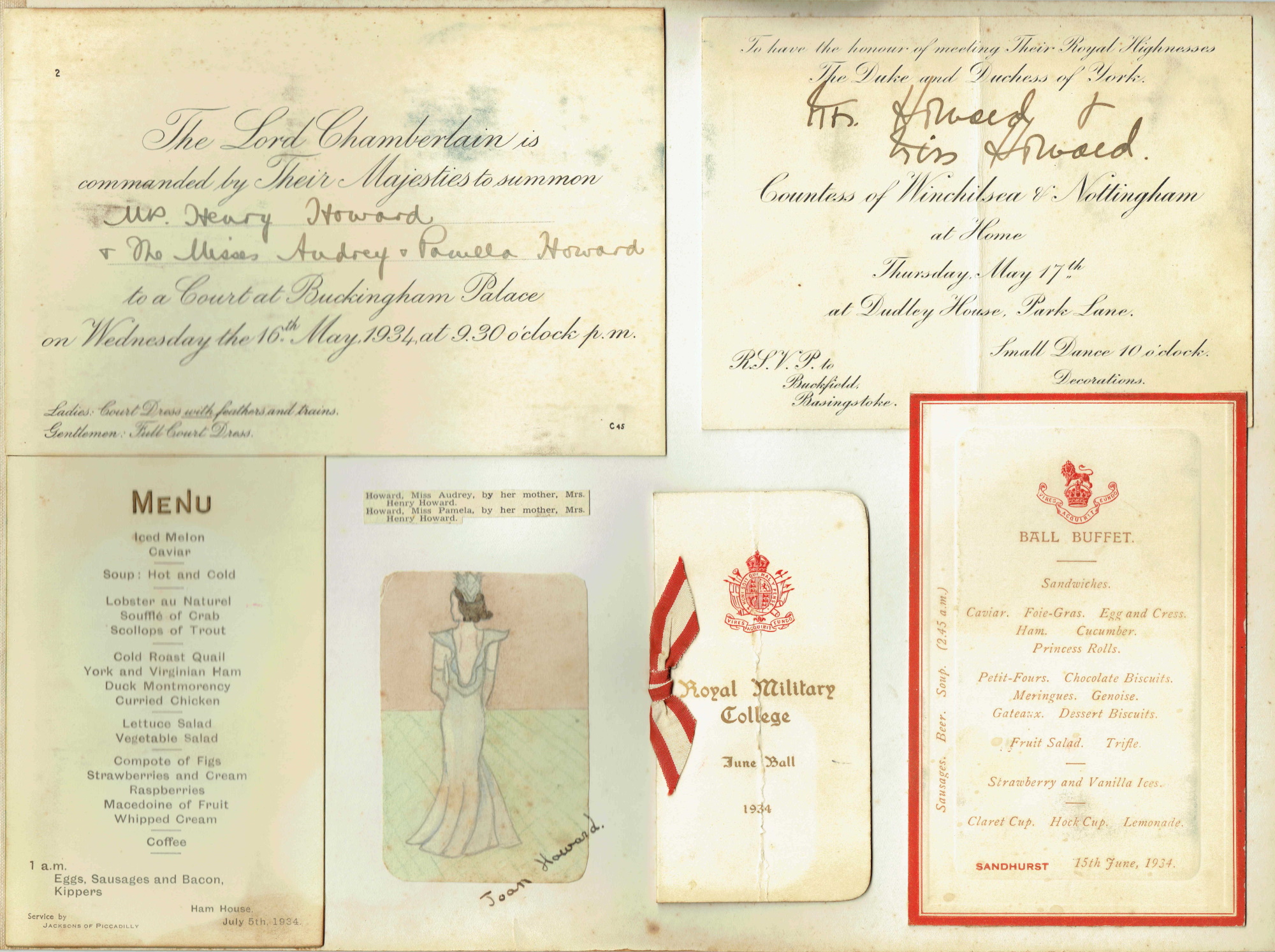 In fact, as you can see from the Palace invitation, Audrey’s elder sister Pamela was also presented on that same occasion, though Audrey’s name appears first on their invitation. Also, in quite a breach of established protocol, their mother Millicent should have been designated “Mrs Millicent Howard” rather than “Mrs Henry Howard”, as she and Henry had been divorced several years previously! Even if Henry had predeceased her whilst they were still married, she should have been addressed as “Mrs Henry Howard”.