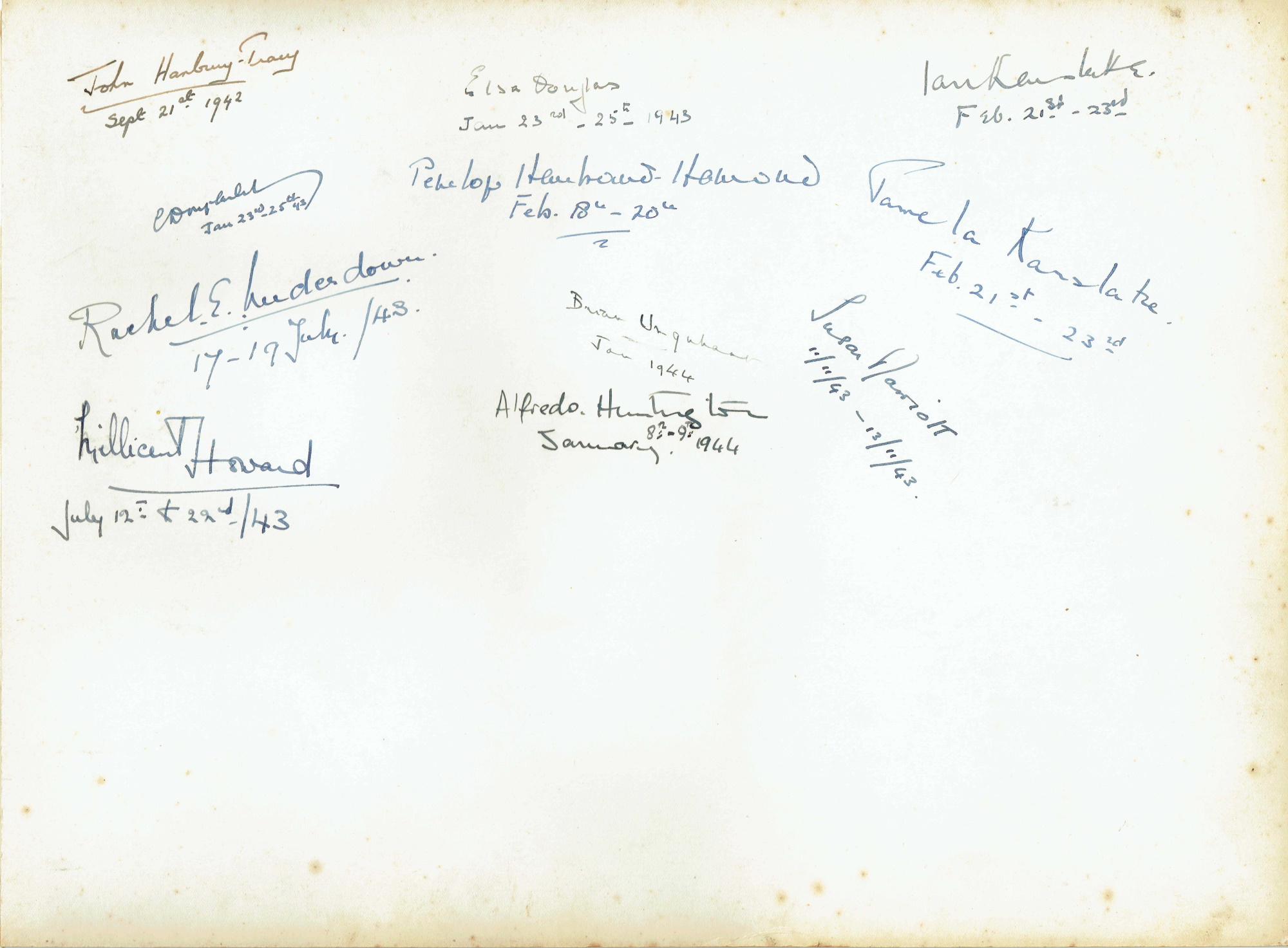 The autographers are rather a mixed bunch, in some ways simply confirmation that Audrey remained in Netheravon throughout the war. I’ve stuck my neck out with Brian Urquhart, but the attribution is by no means implausible.