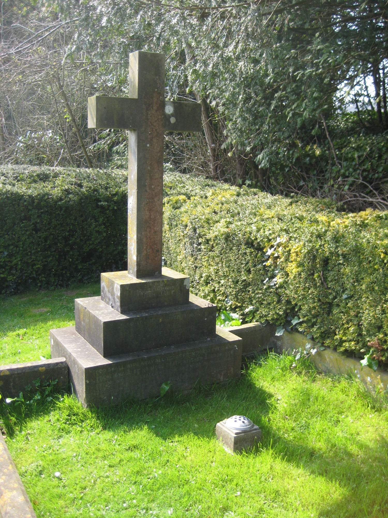 His grave is in the furthermost corner of the James family burial area outside. Unfortunately I have visual difficulties with digital cameras, and rely totally on others to take the photographs. The picture below can't be counted as a success, though the low angle of the sun was difficult to contend with anyway.