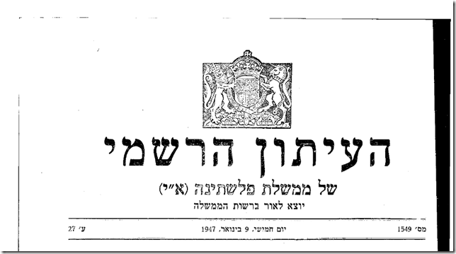 THE OFFICIAL NEWSPAPER of the government of Palestine (the land of Israel).